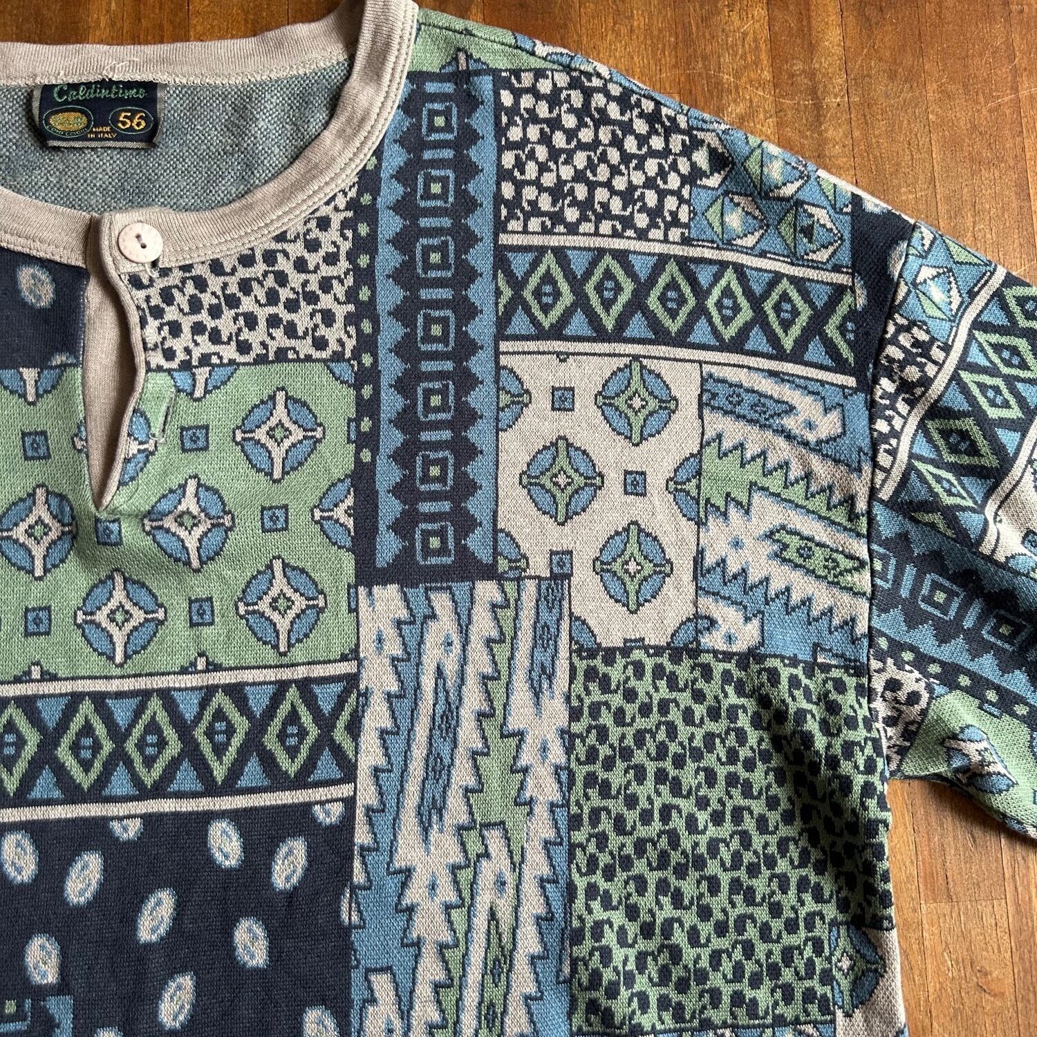 イタリア 総柄ニットシャツ 90's Italy [C2374]
