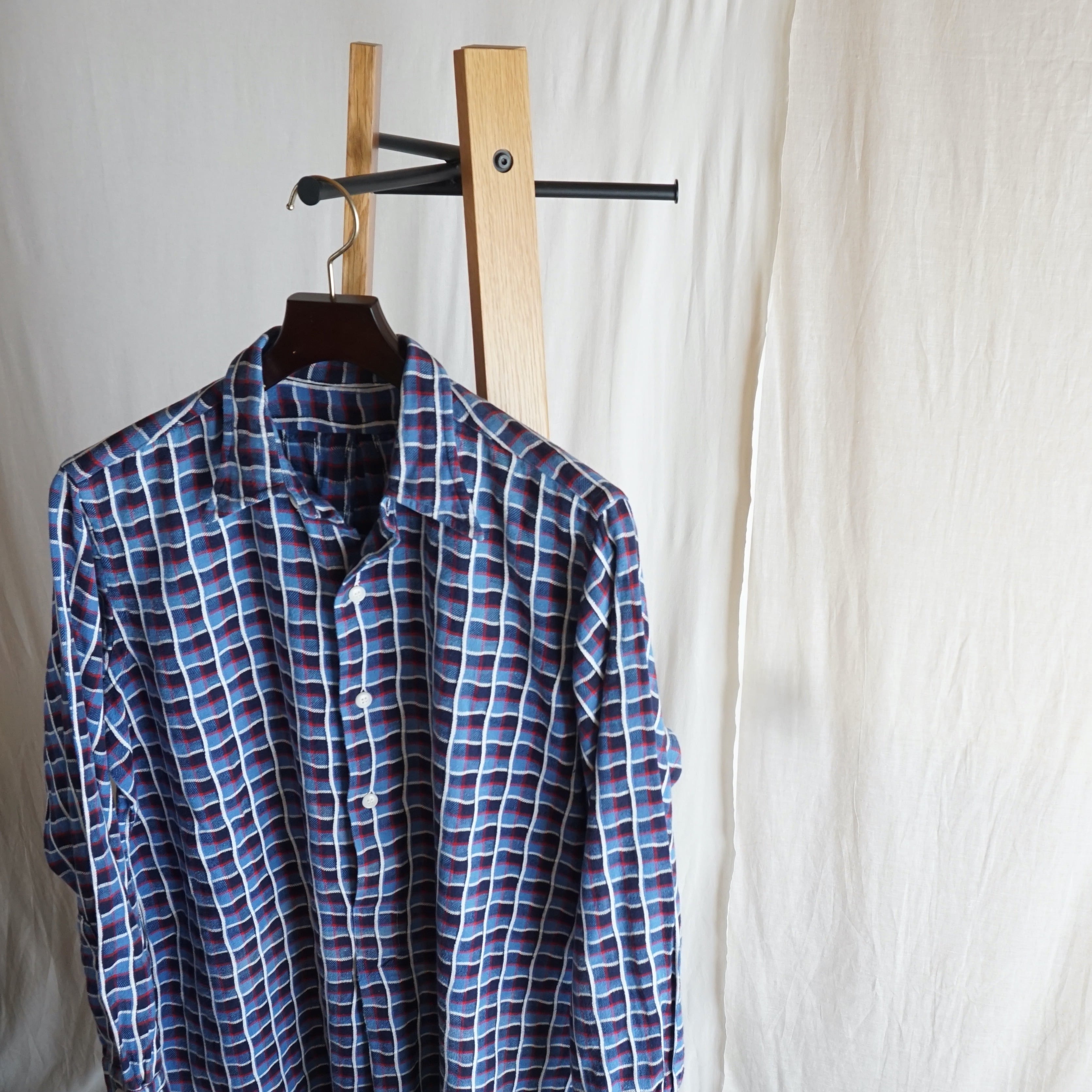 ブルーxホワイトxレッドのチェック柄はホワイトのラインが微妙に波打っているパターンなのでサイケデリックな印象すら受けます。