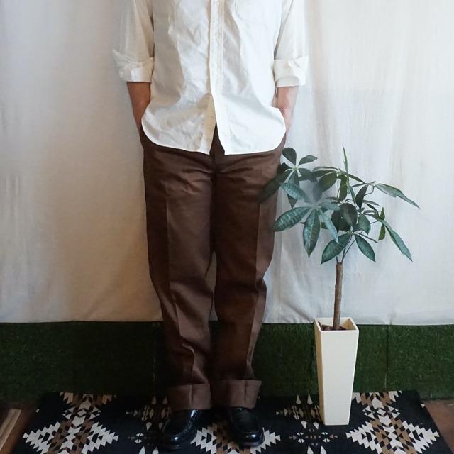 太めのストレートで緩いテーパードのかかったシルエットは男臭い定番のワークパンツの形です。