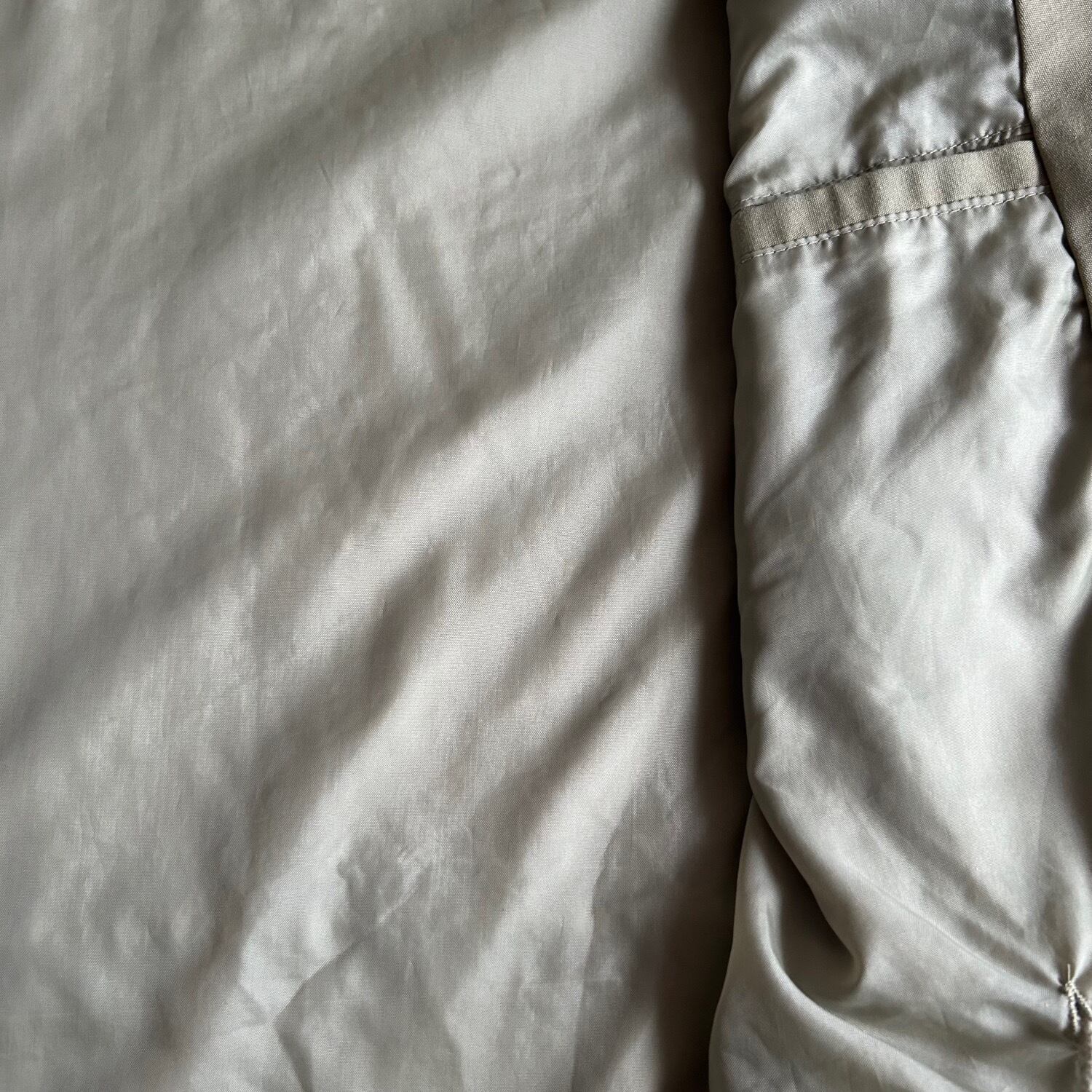 ポリエステル65%コットン35%の素材感は薄手で柔らかくライトアウターらしい質感です。