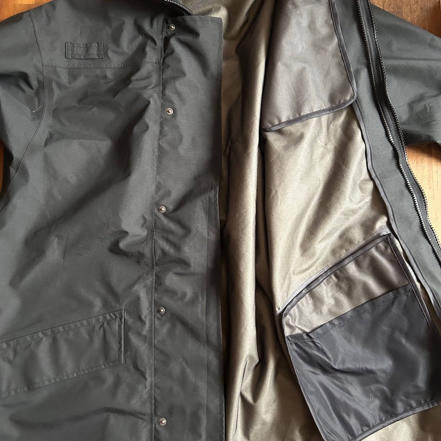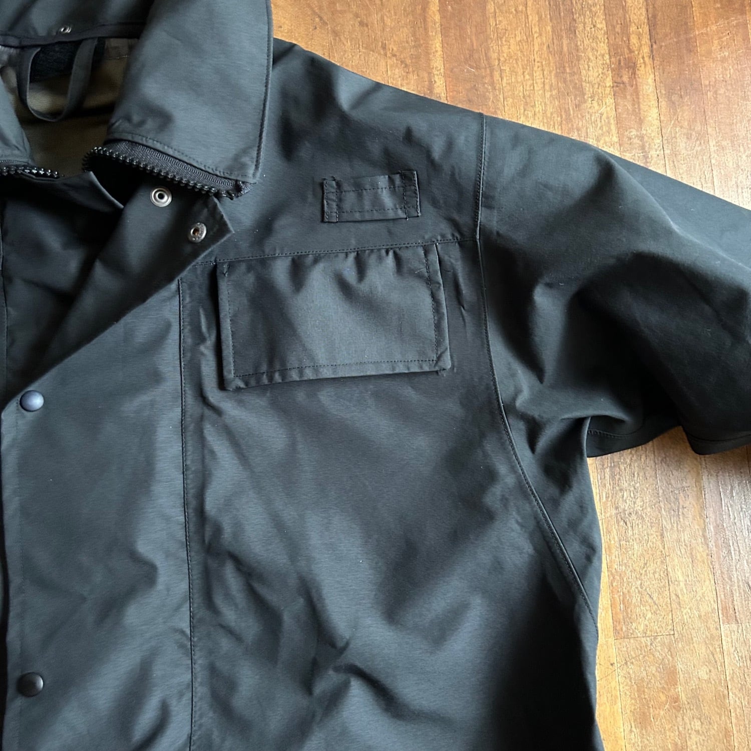 ゴアテックスの素材を活かした構造なのは、深めに入った前合わせの重ねた部分が象徴してます。