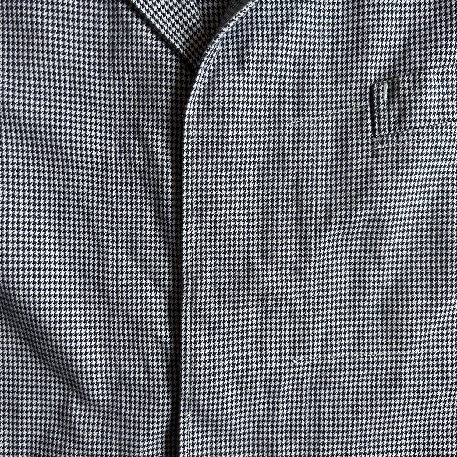 ネイビーの千鳥格子のチェック柄は清涼感があり、コックジャケットとしての清潔感を演出できる意味のあるデザインです。