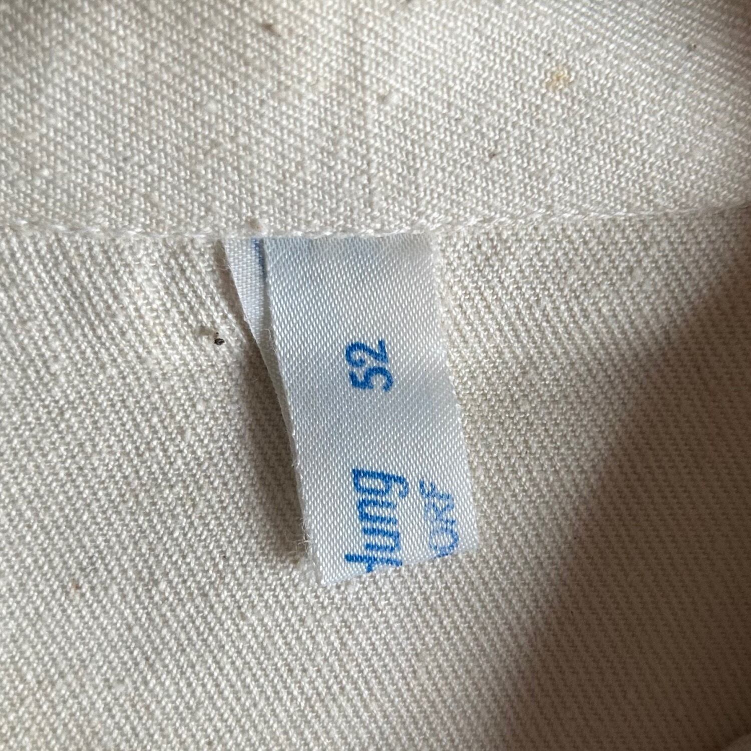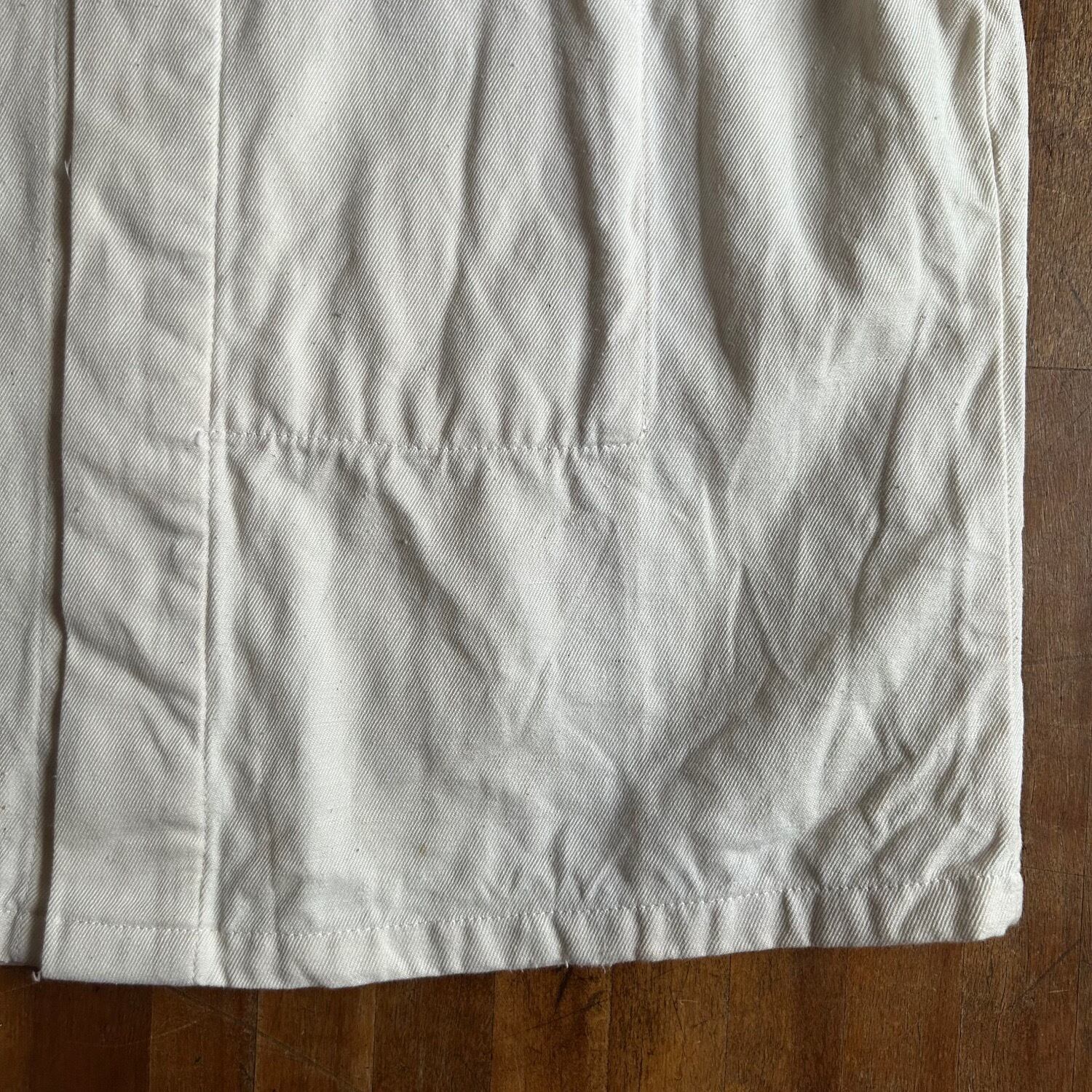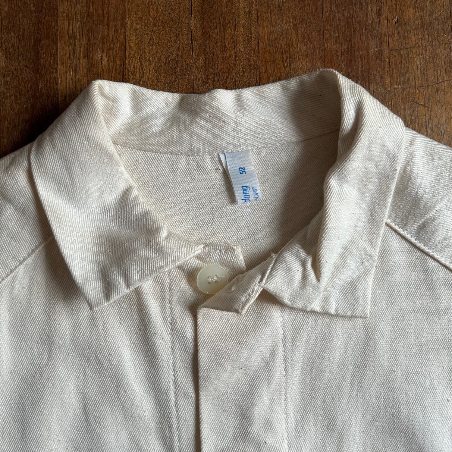 襟が小さく比翼仕立て(隠しボタン)仕様なので柔らかい上品な表情のワークジャケットです。