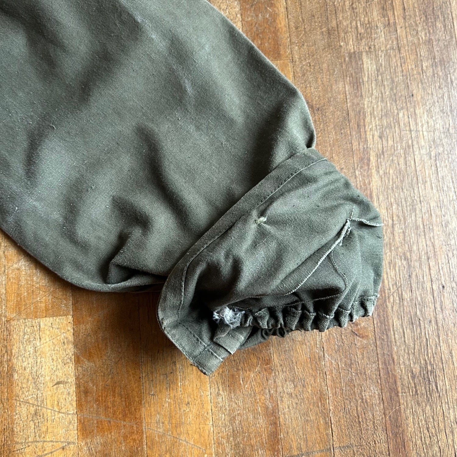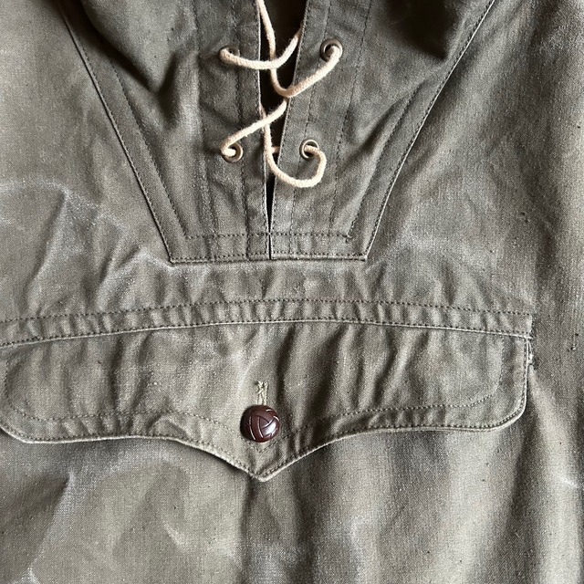 山岳部隊のもので、硬いコットンキャンバスの平織の素材感は厚みがありしっかりしたヴィンテージらしい質感です。