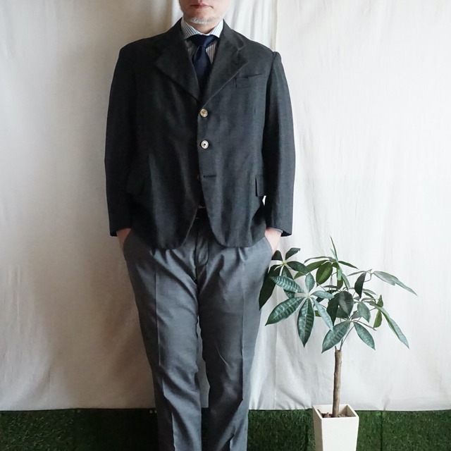 カラーはチャコールグレーで近くで見て初めてわかる薄いチェック柄がフレンチヴィンテージらしいヒドゥンチェック柄です。