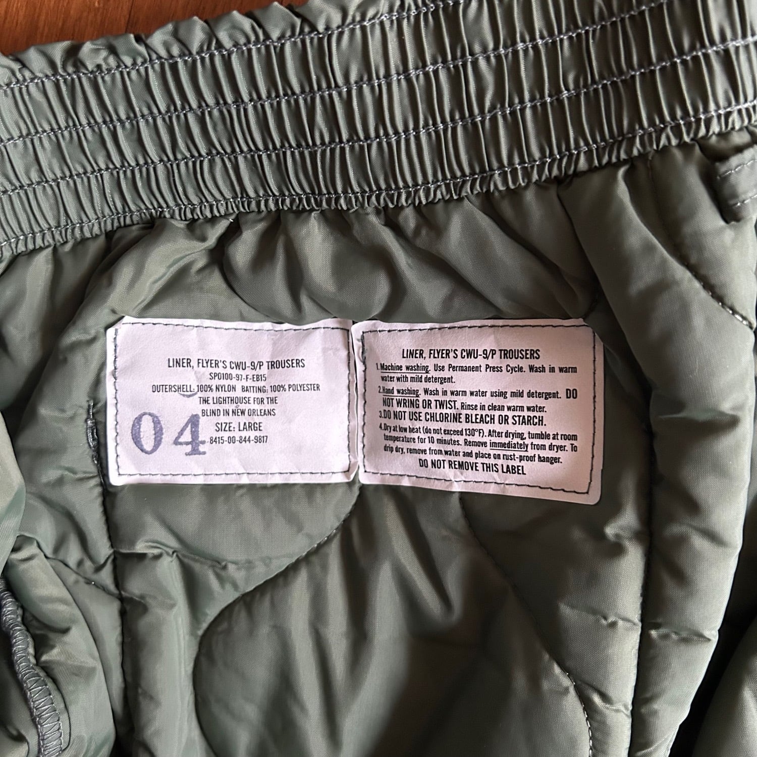 アメリカ空軍90年代のキルティングライナーパンツです。