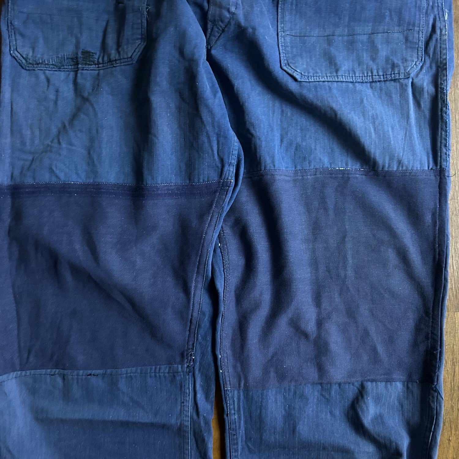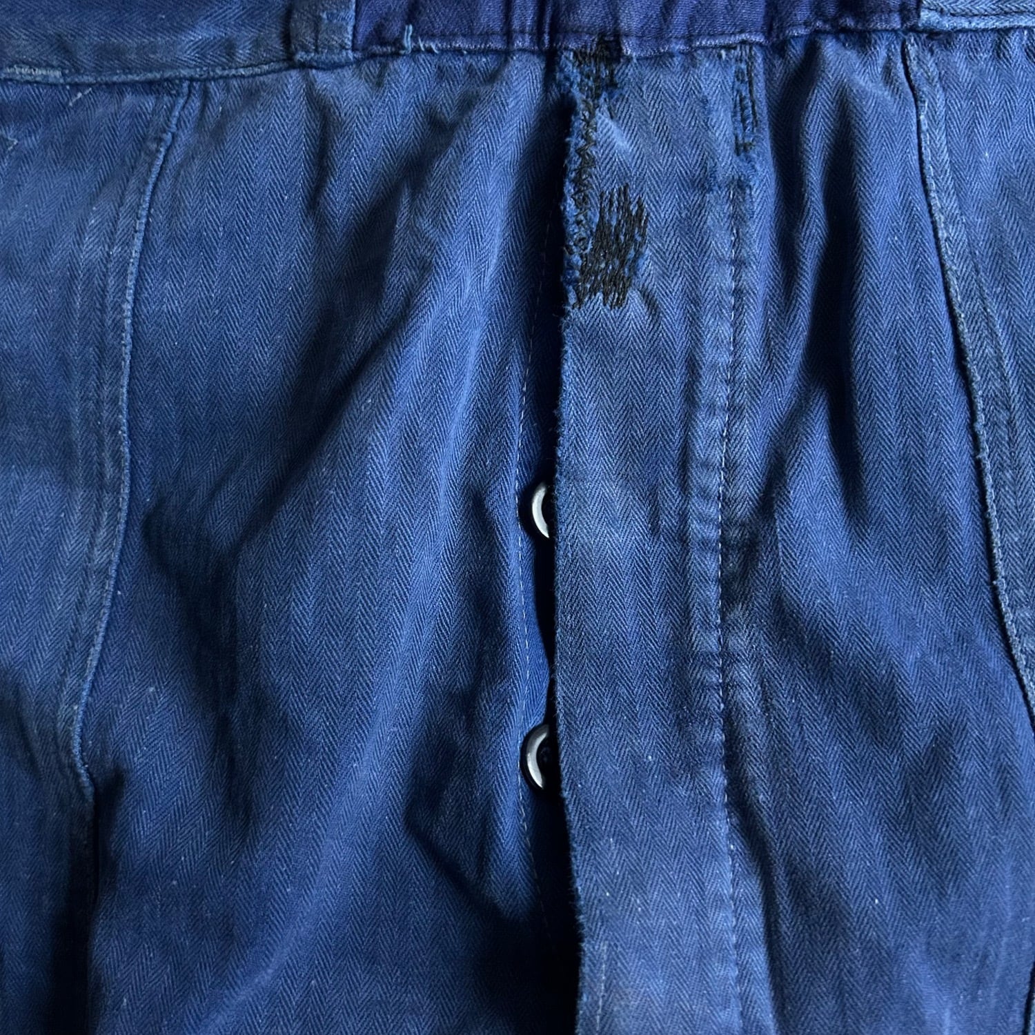 ドイツワークならではのヘリンボーン織コットンは大切に使用されており、壊れたらリペアをして直していった工程で良い雰囲気に育っています。