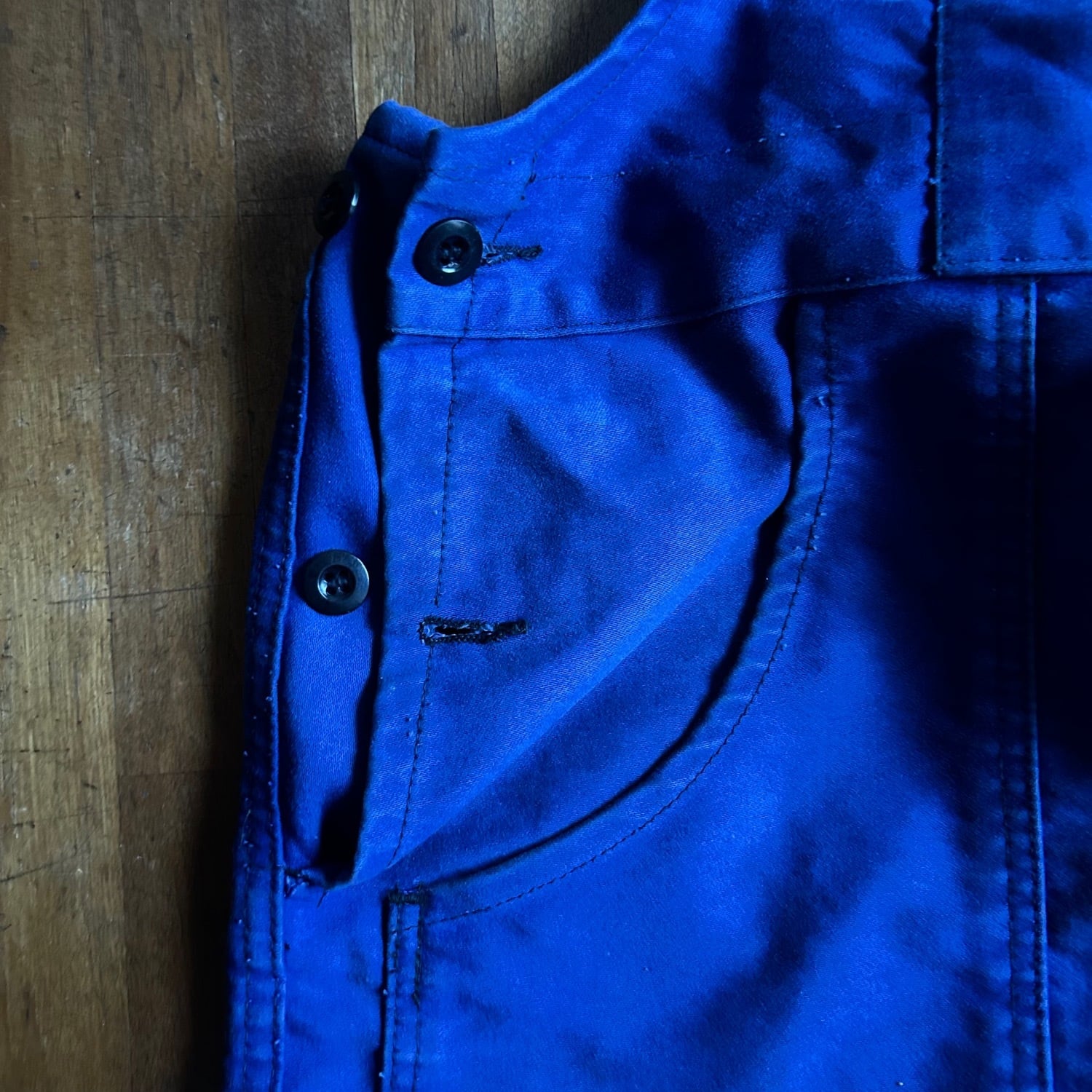 フレンチワークの代表的素材であるモールスキンは厚みのあるサテン織コットンが特徴的です。