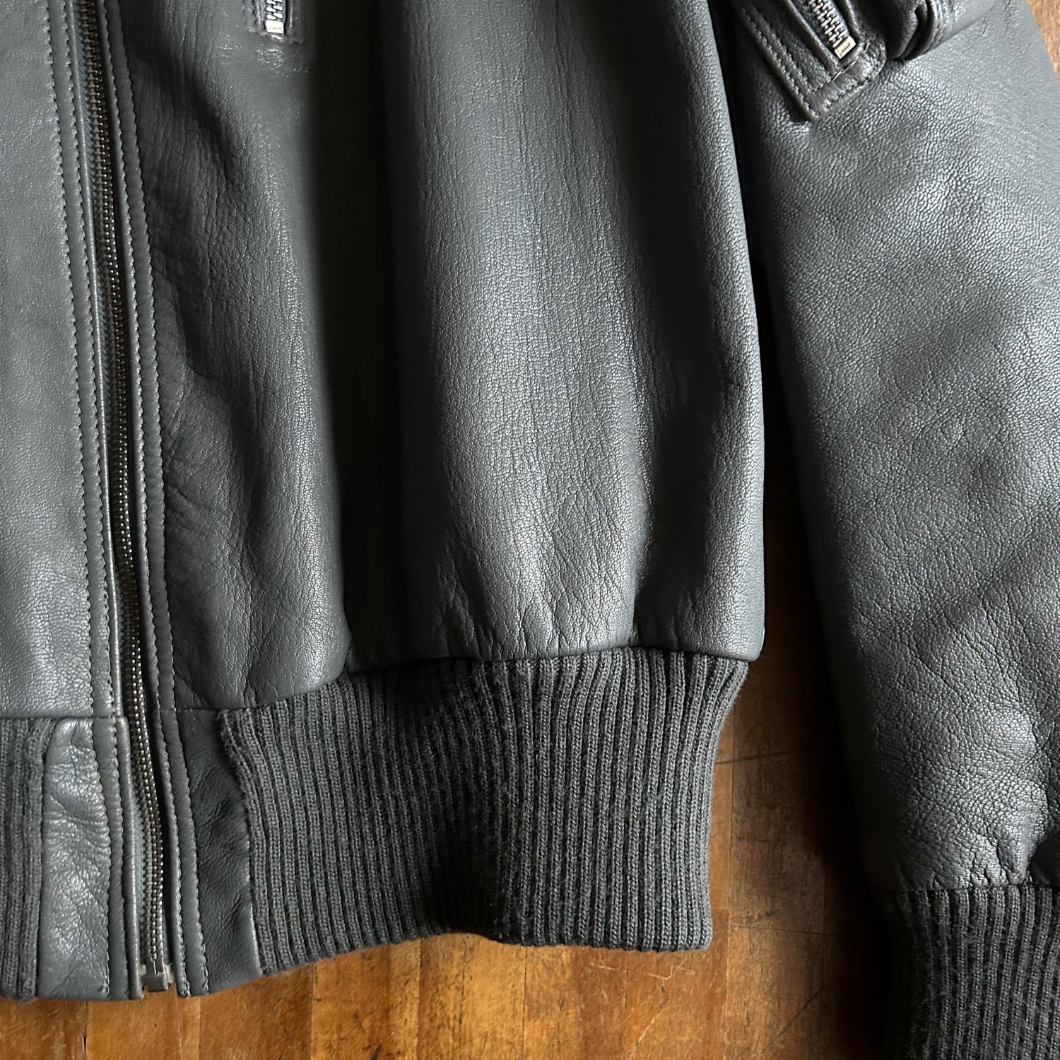 シープレザーの質感は無骨な厚みと柔らかさのある素材感です。