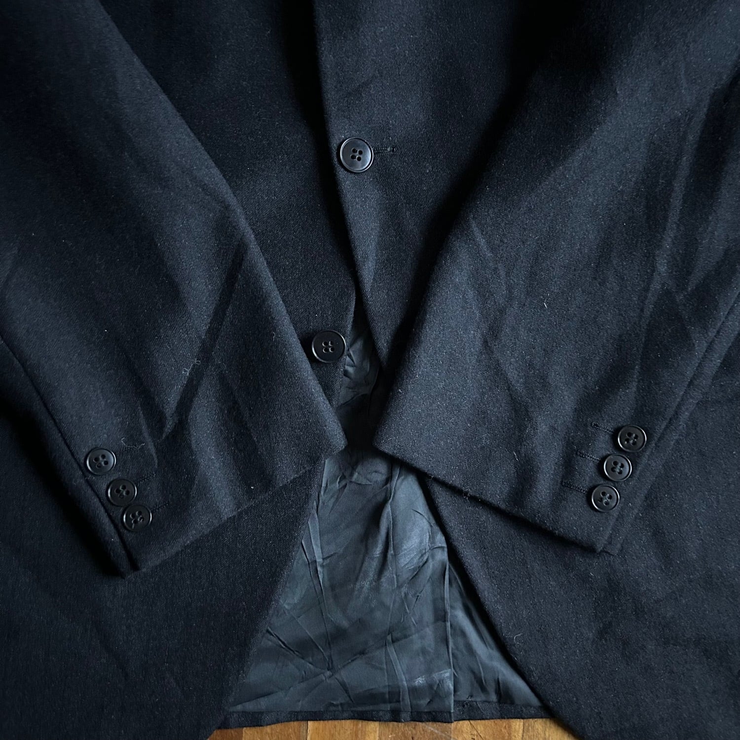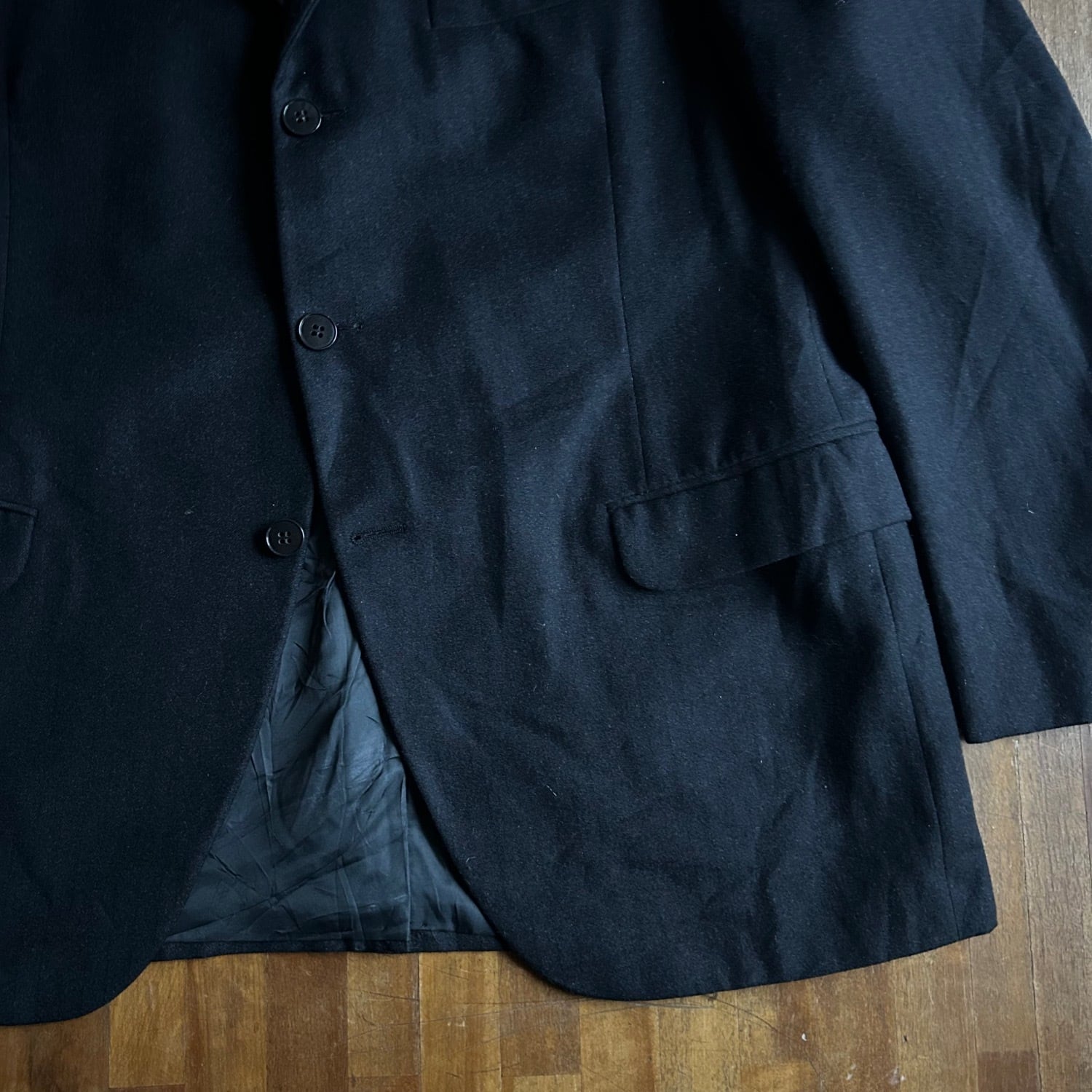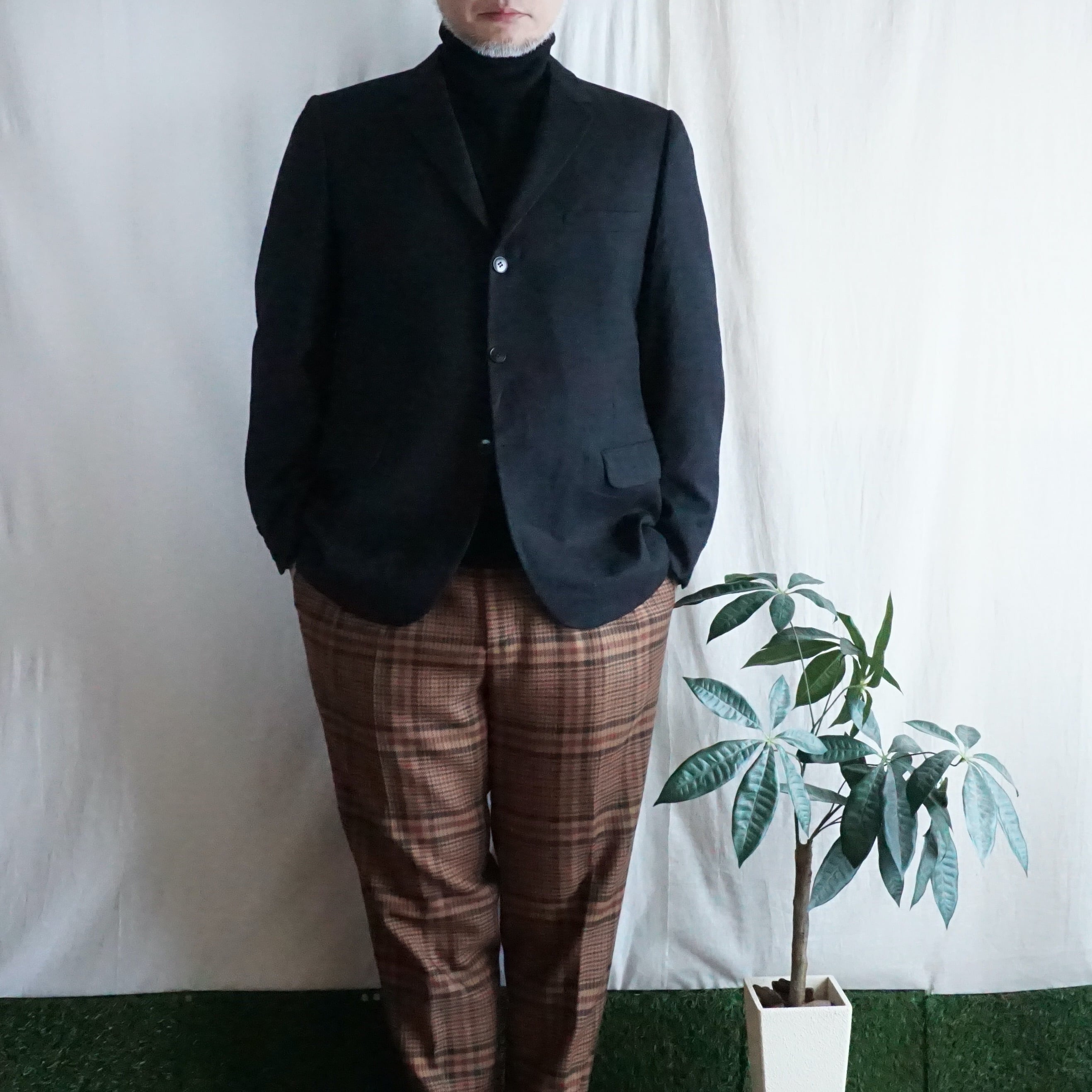 細めのラペル幅にノッチドラペルが絶妙な位置でということで、当時のモダンで最先端なディテールと裾の開き具合がクラシックで、この感覚が当時の空気感が知れてィンテージ古着ならではの楽しさがあります。