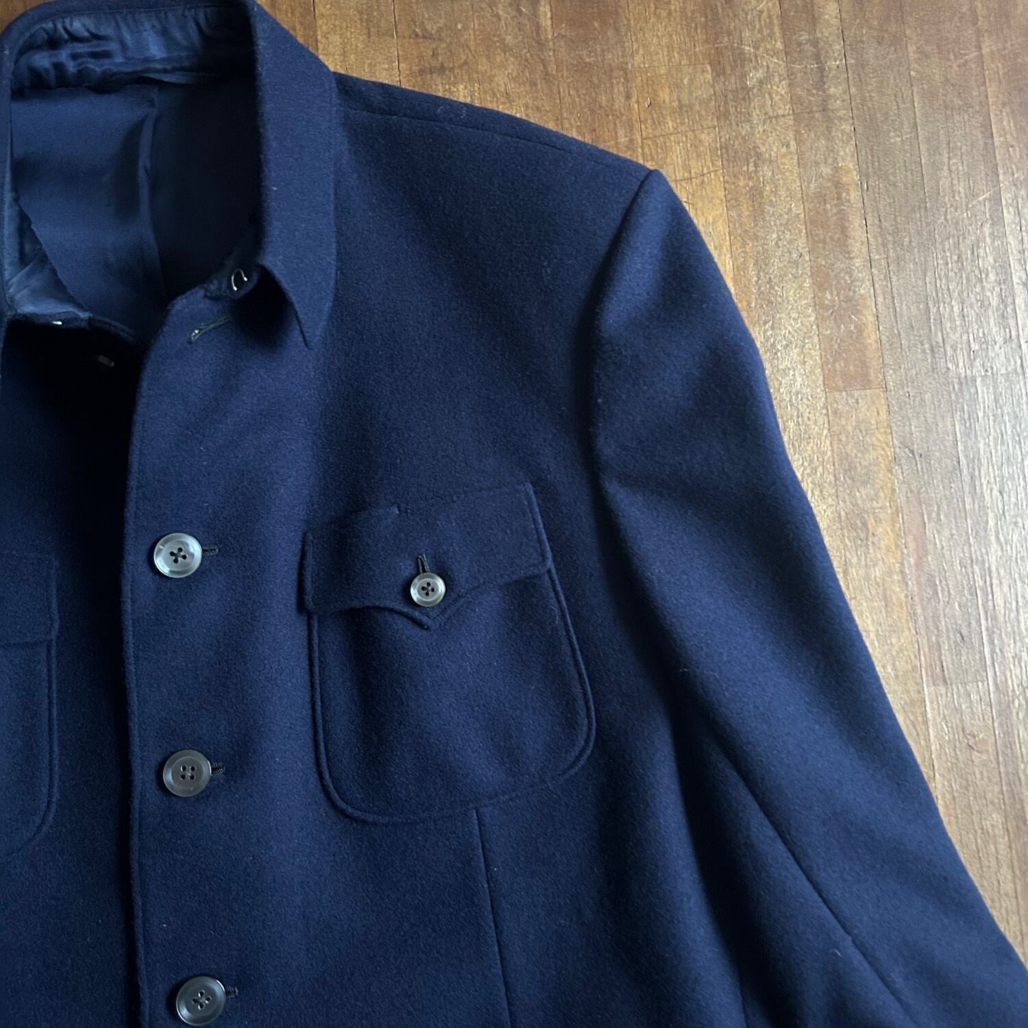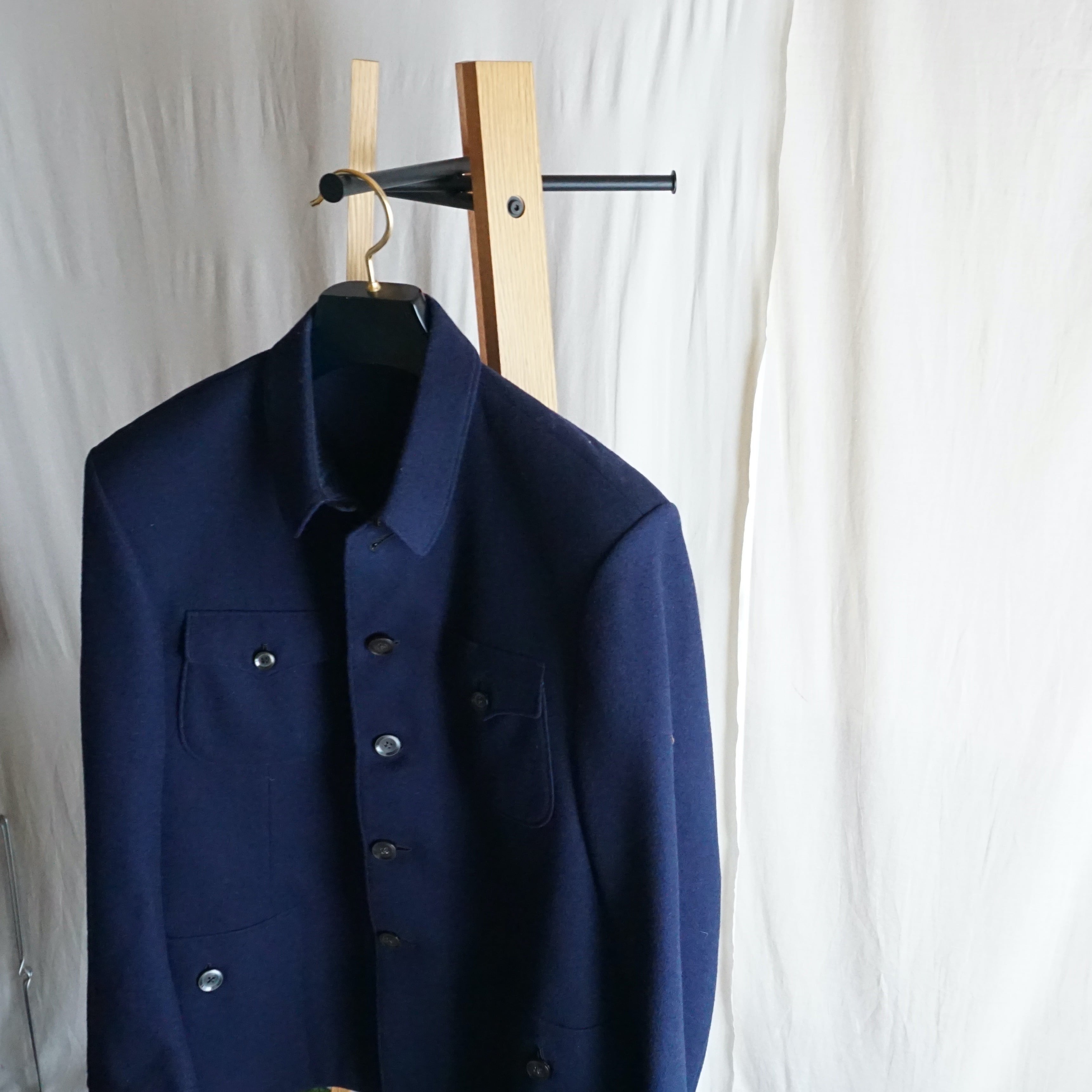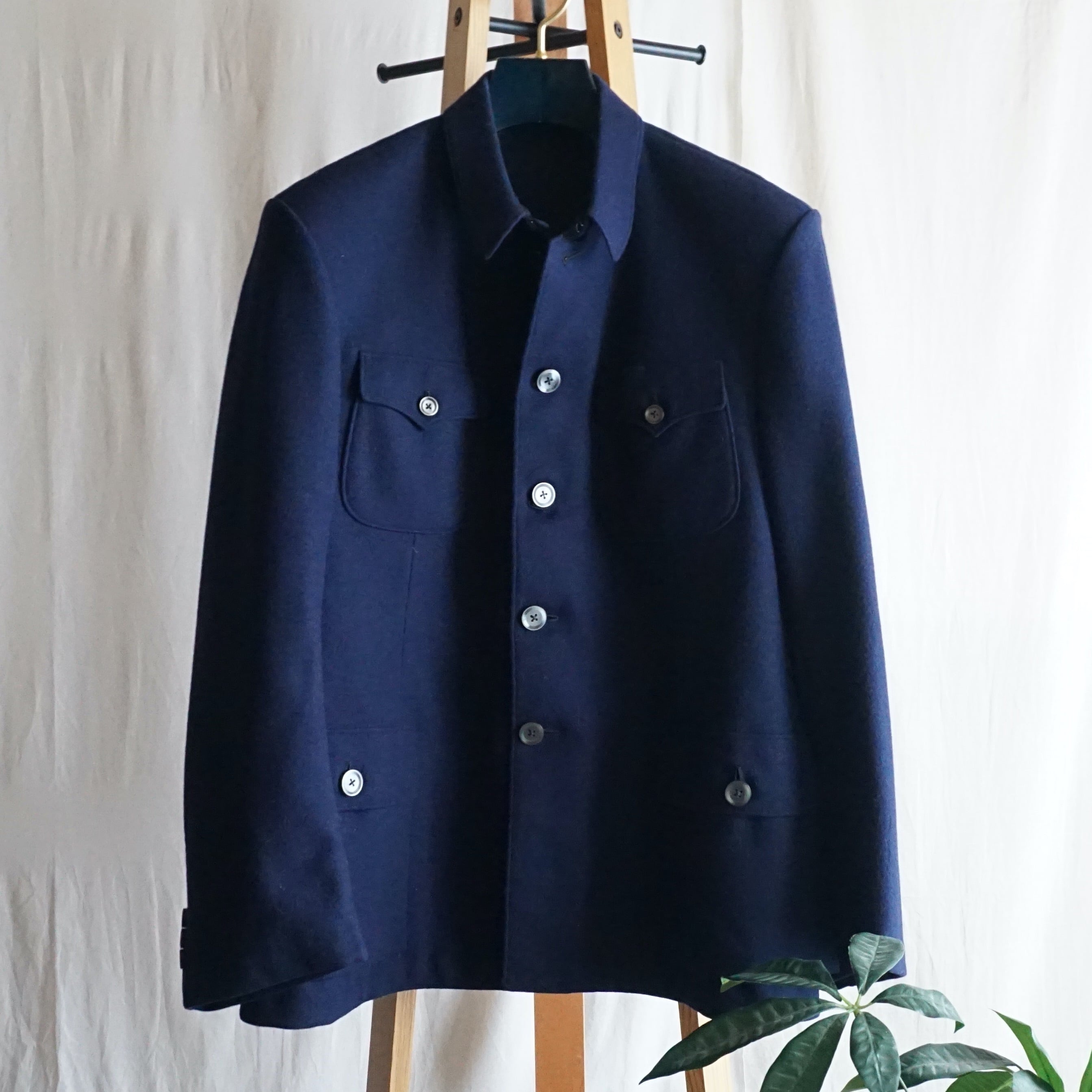 まずはウールの質感は質の良いハリがあり、ネイビーの発色が良く映える素材感です。