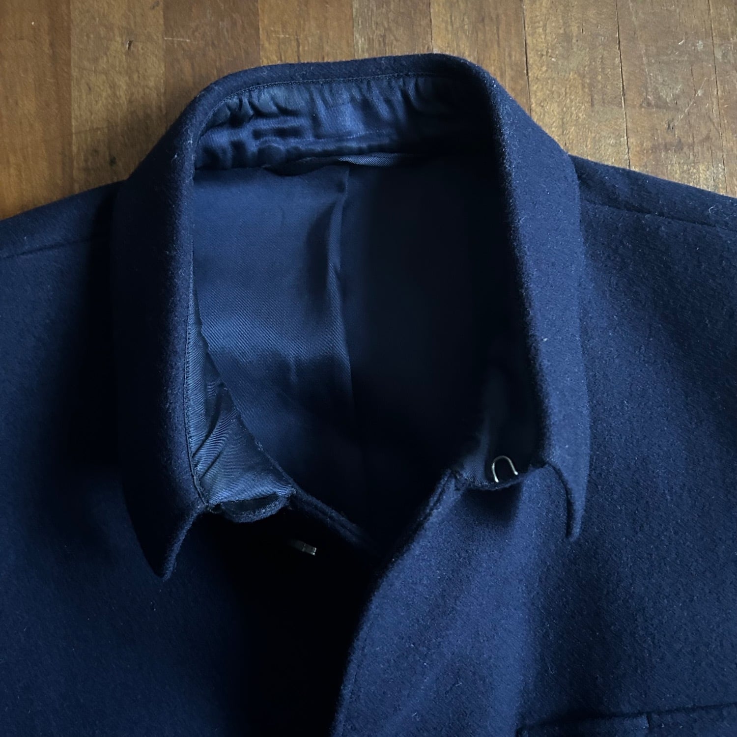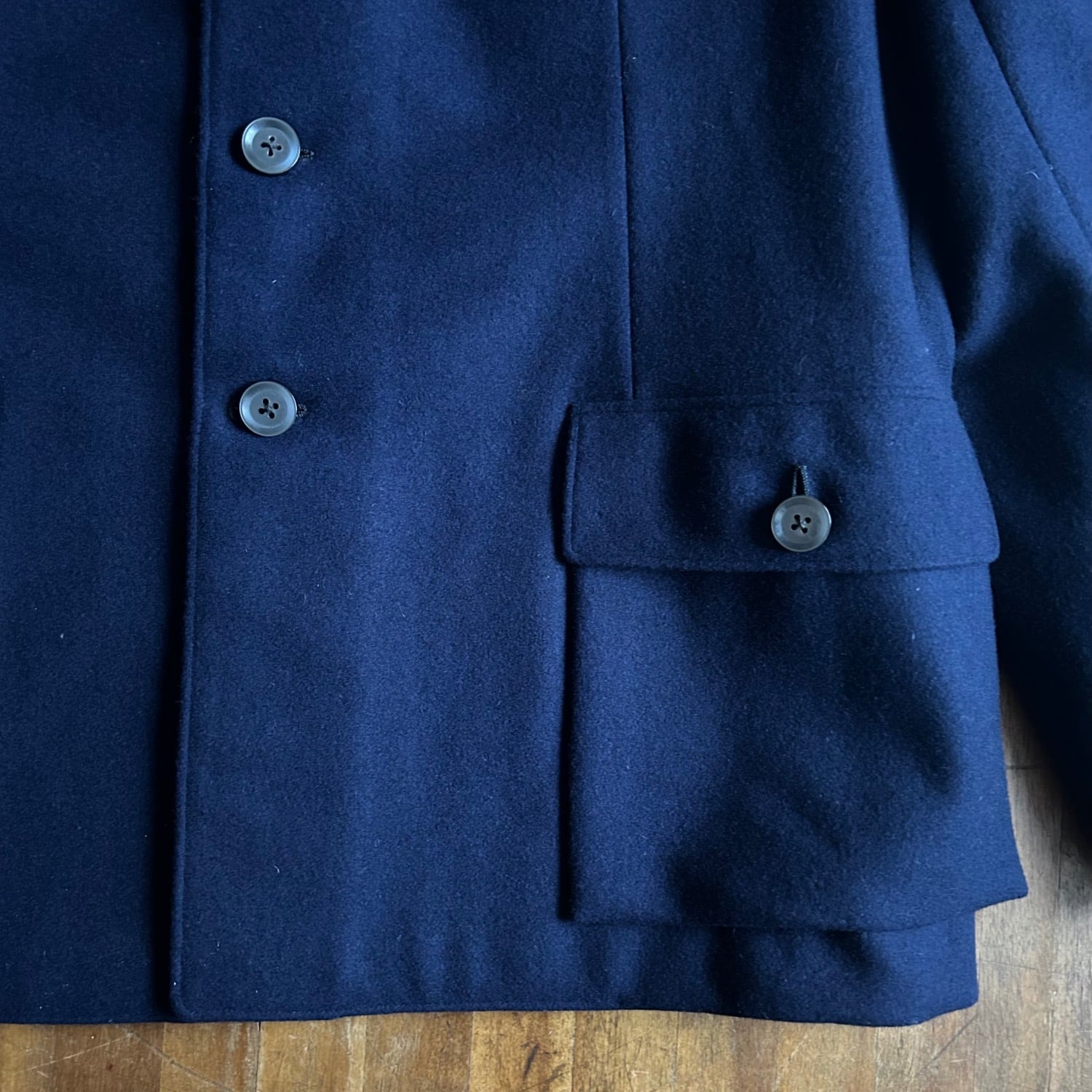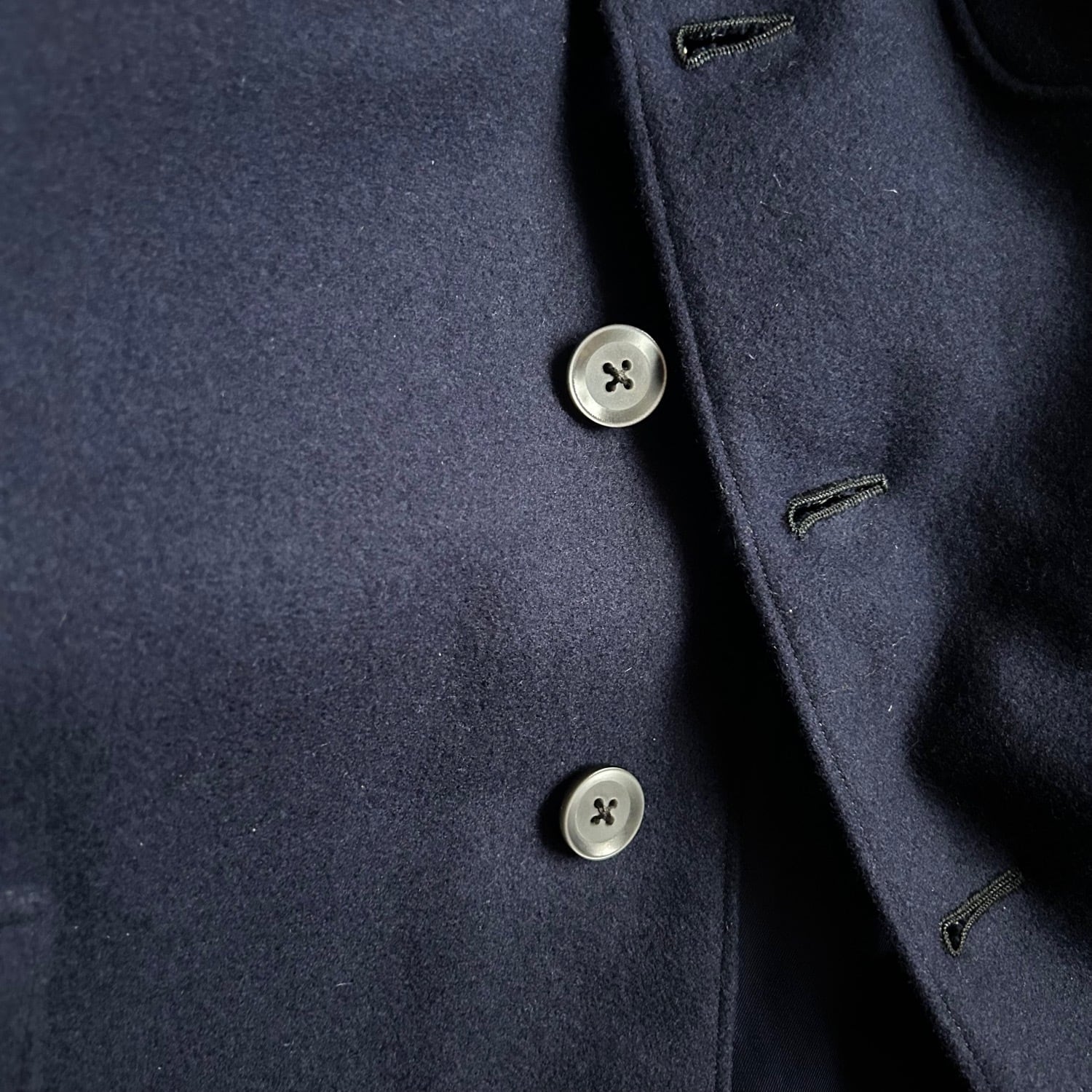 まずはウールの質感は質の良いハリがあり、ネイビーの発色が良く映える素材感です。