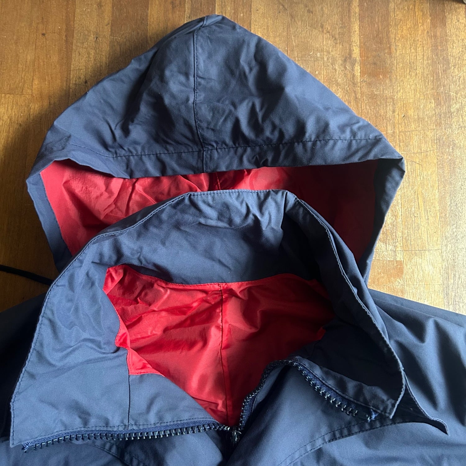 襟に収納されているフードの内臓や、バイクを乗ることを見越して腕からの風の侵入を防ぐリブ、裾が動きの邪魔にならないためのダブルジップの仕様と配達員のことをよく考えて作られた設計です。