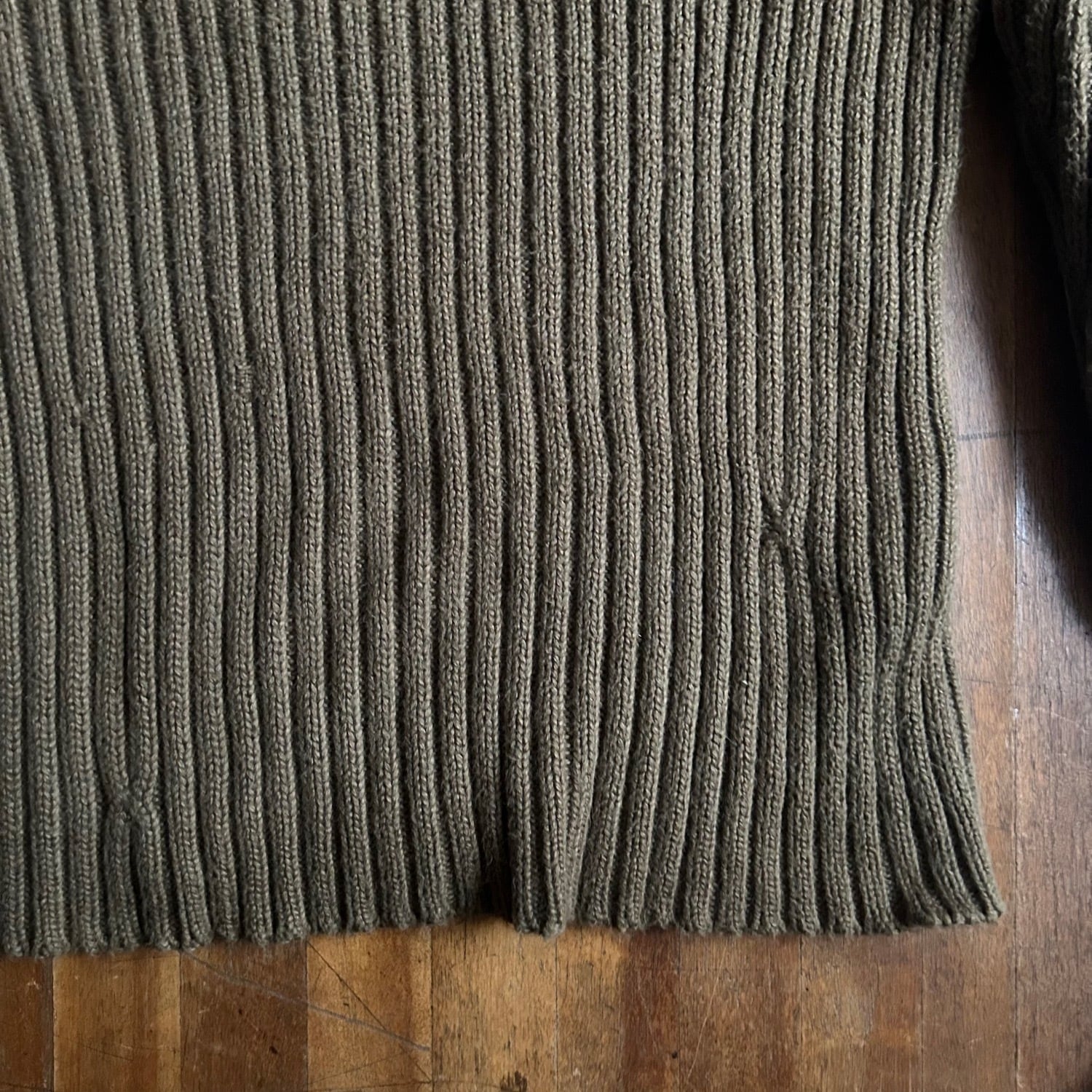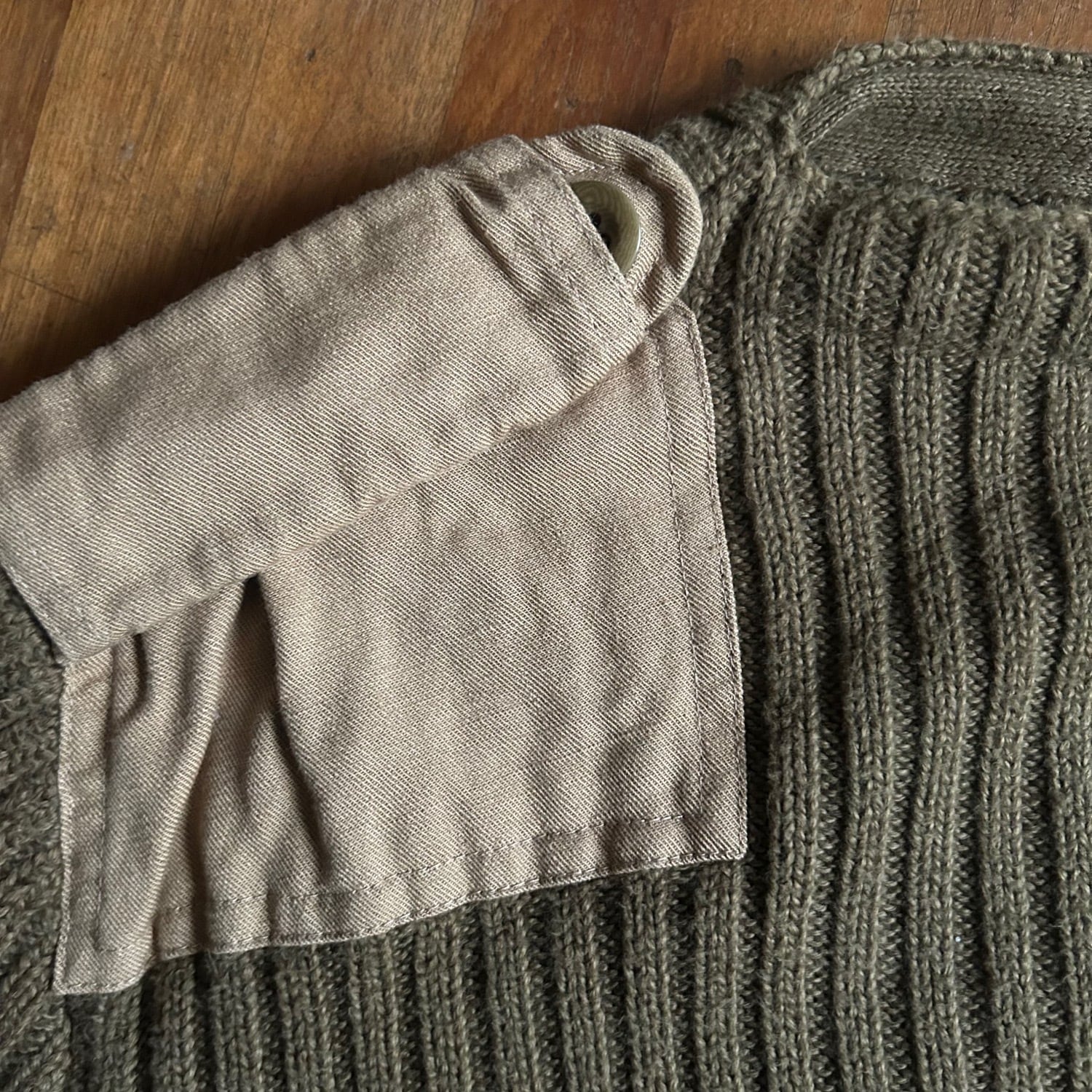 元ネタはヴィンテージのイギリス軍のコンバットセーターで、映画『007/ No Time To Die』で主演のダニエル・クレイグが着ていたセーターと同じ形なので見覚えのある方も多いと思います。