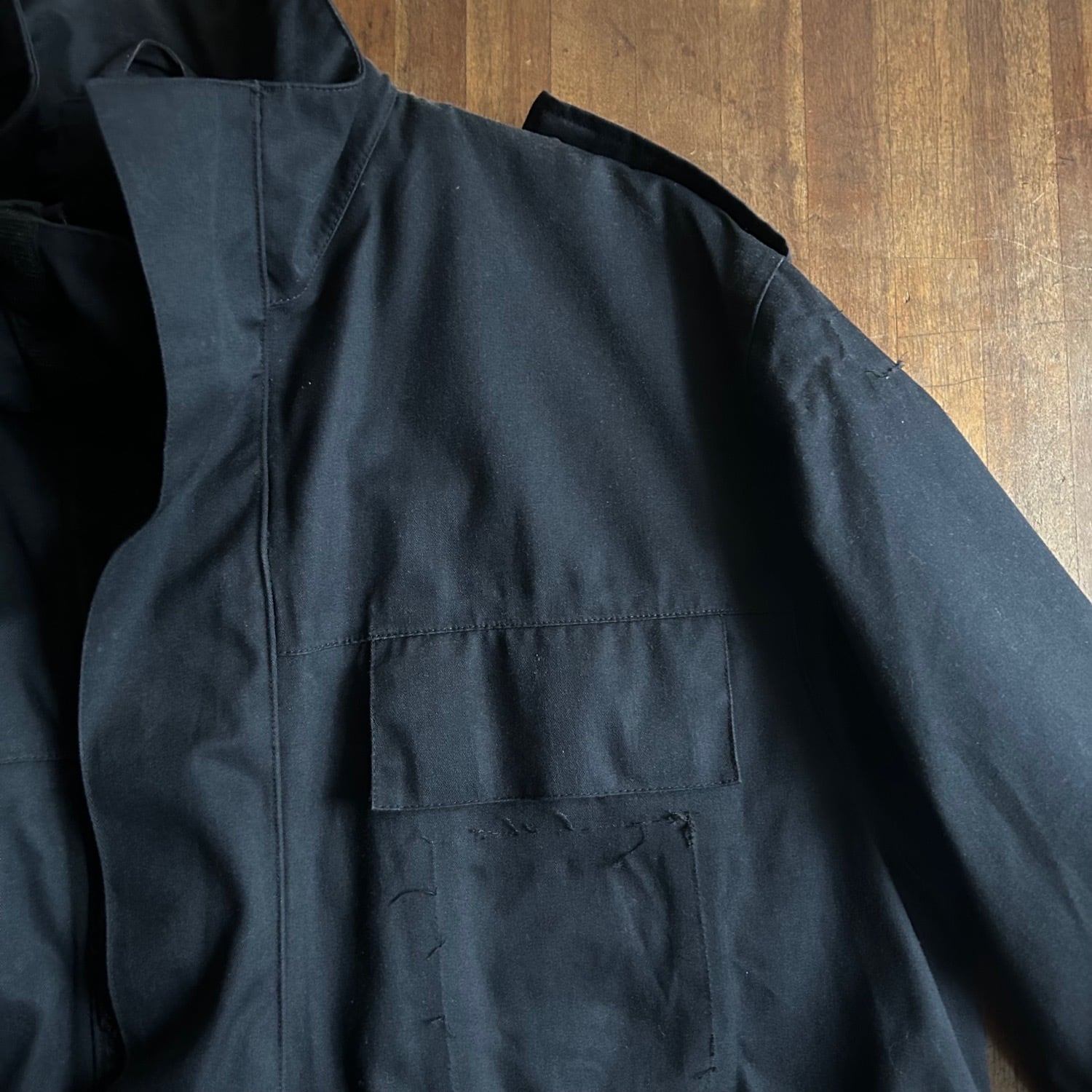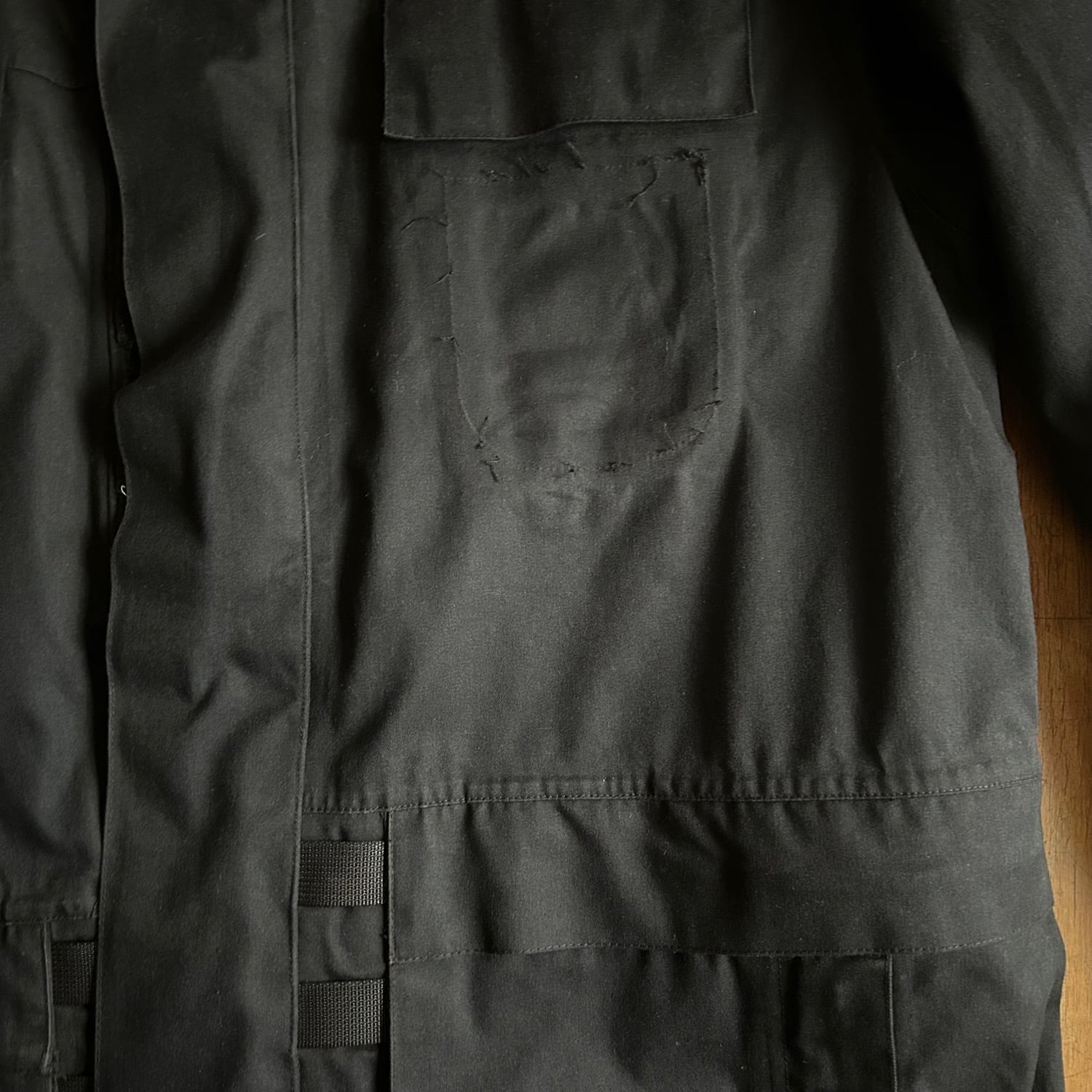 ポケットは大きな胸ポケット2つと腰ポケットはサイドから手が入ります。