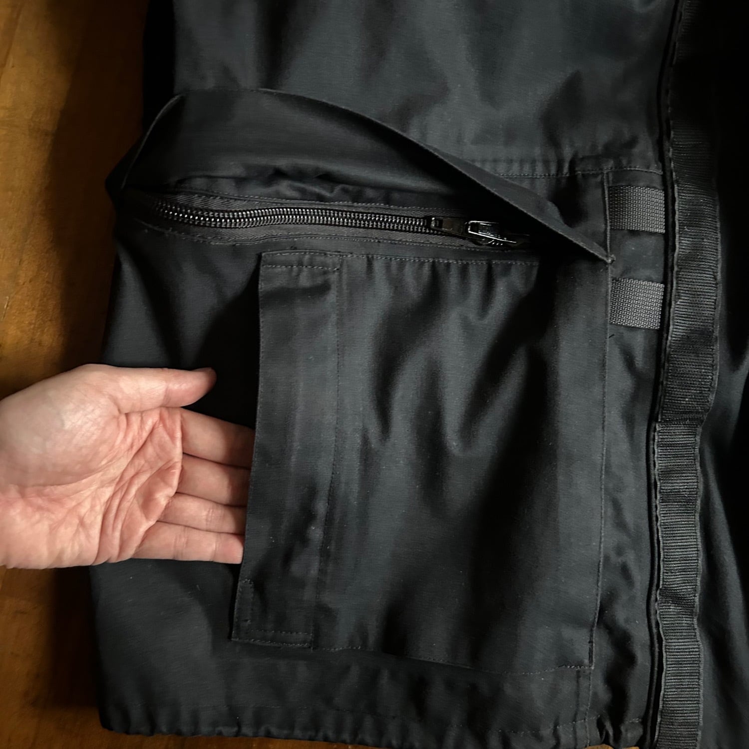 腰ポケットの上部からはインナーのポケットへアクセスできるアクセスポケットになっています。