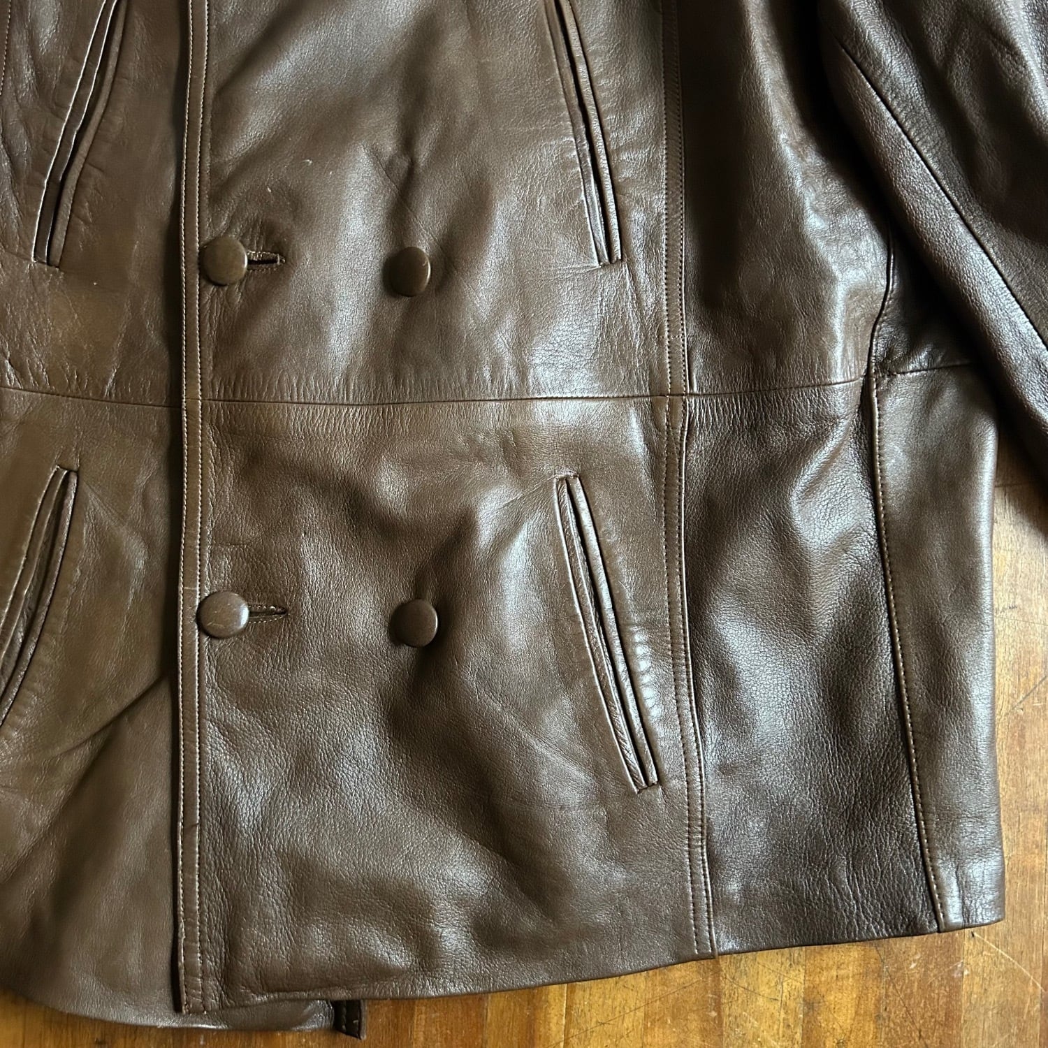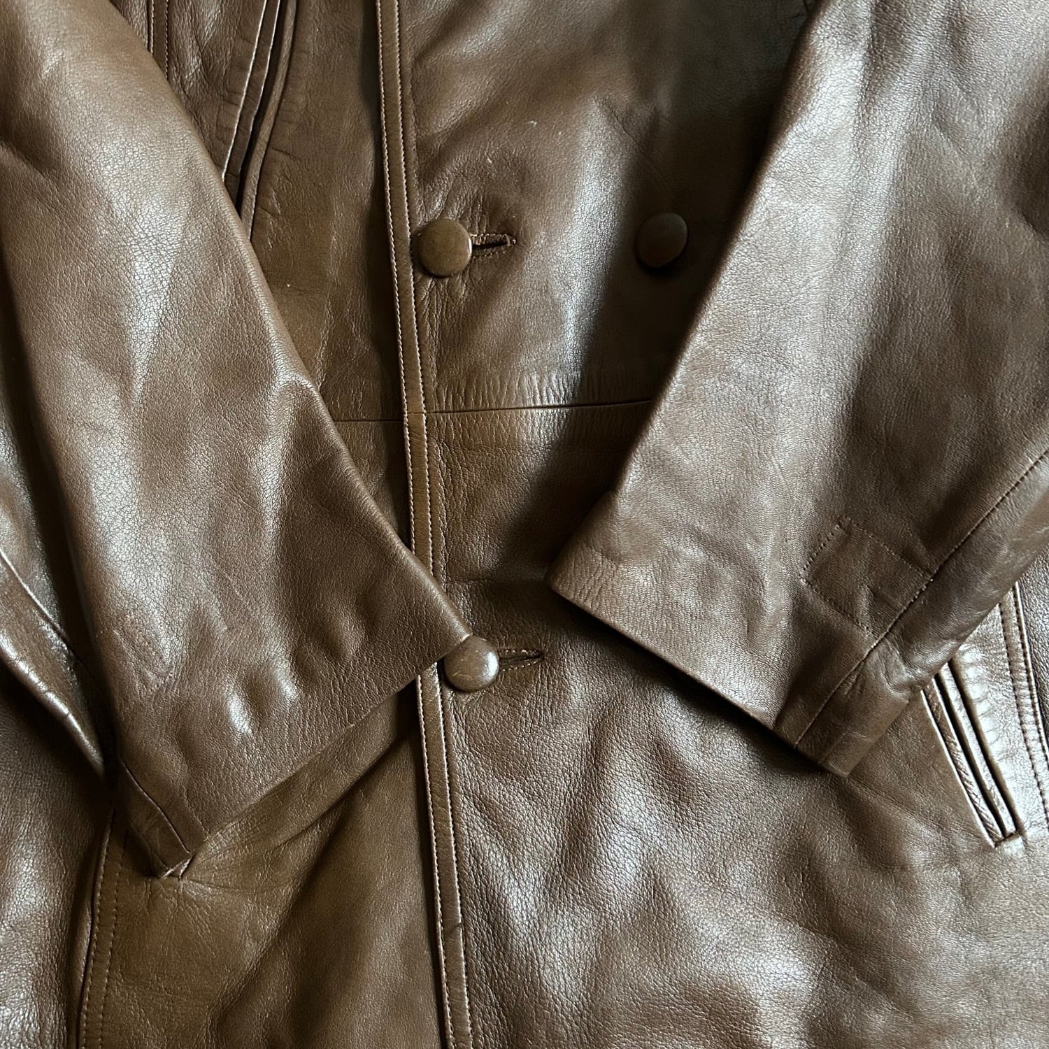 適度な厚みと硬さのあるレザーの質感です。