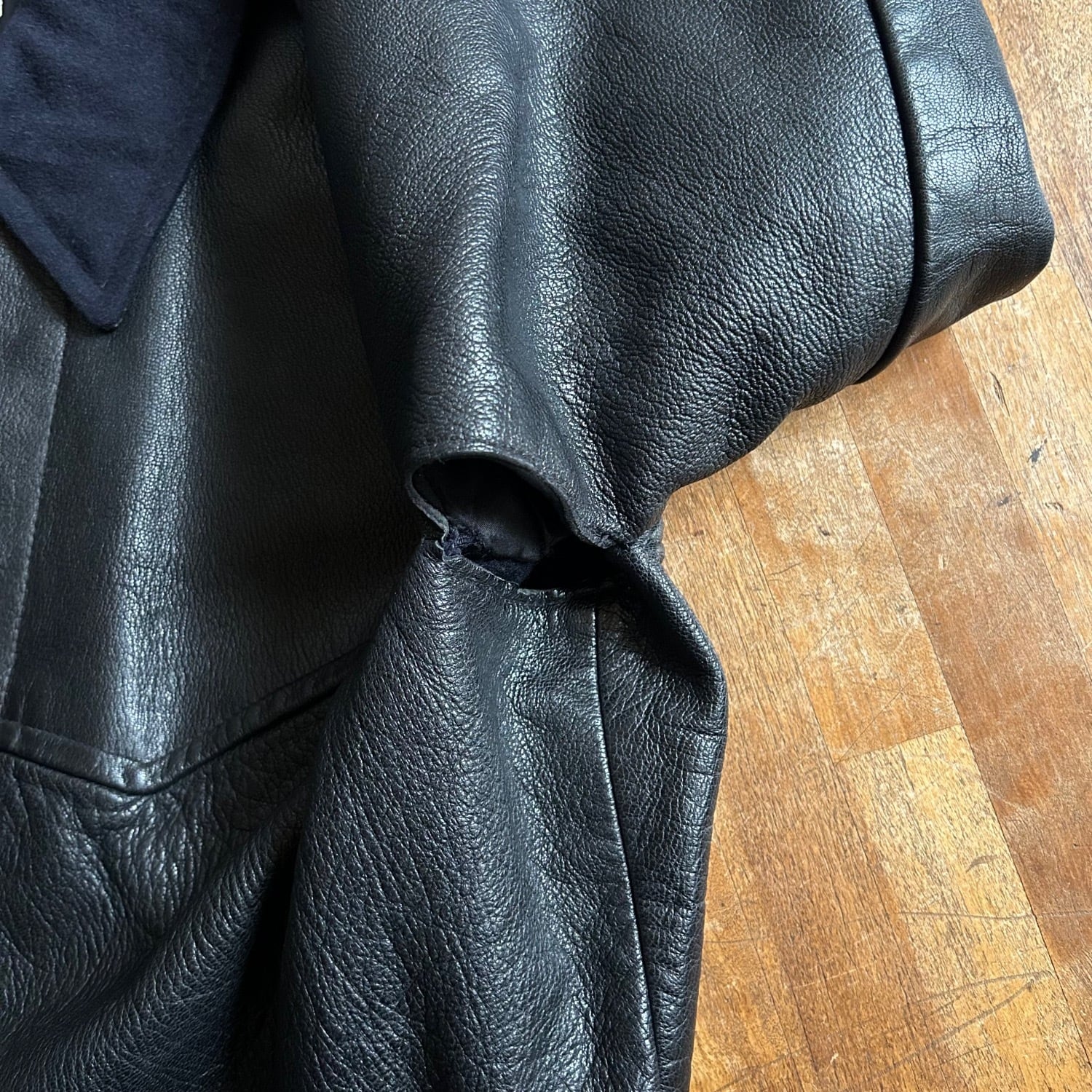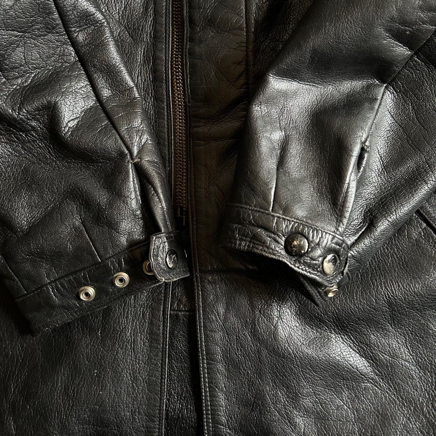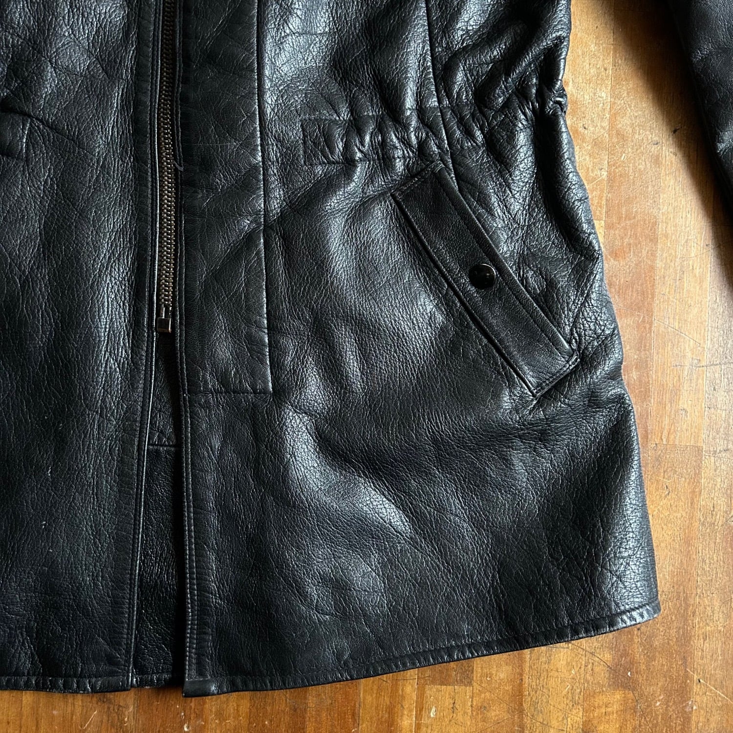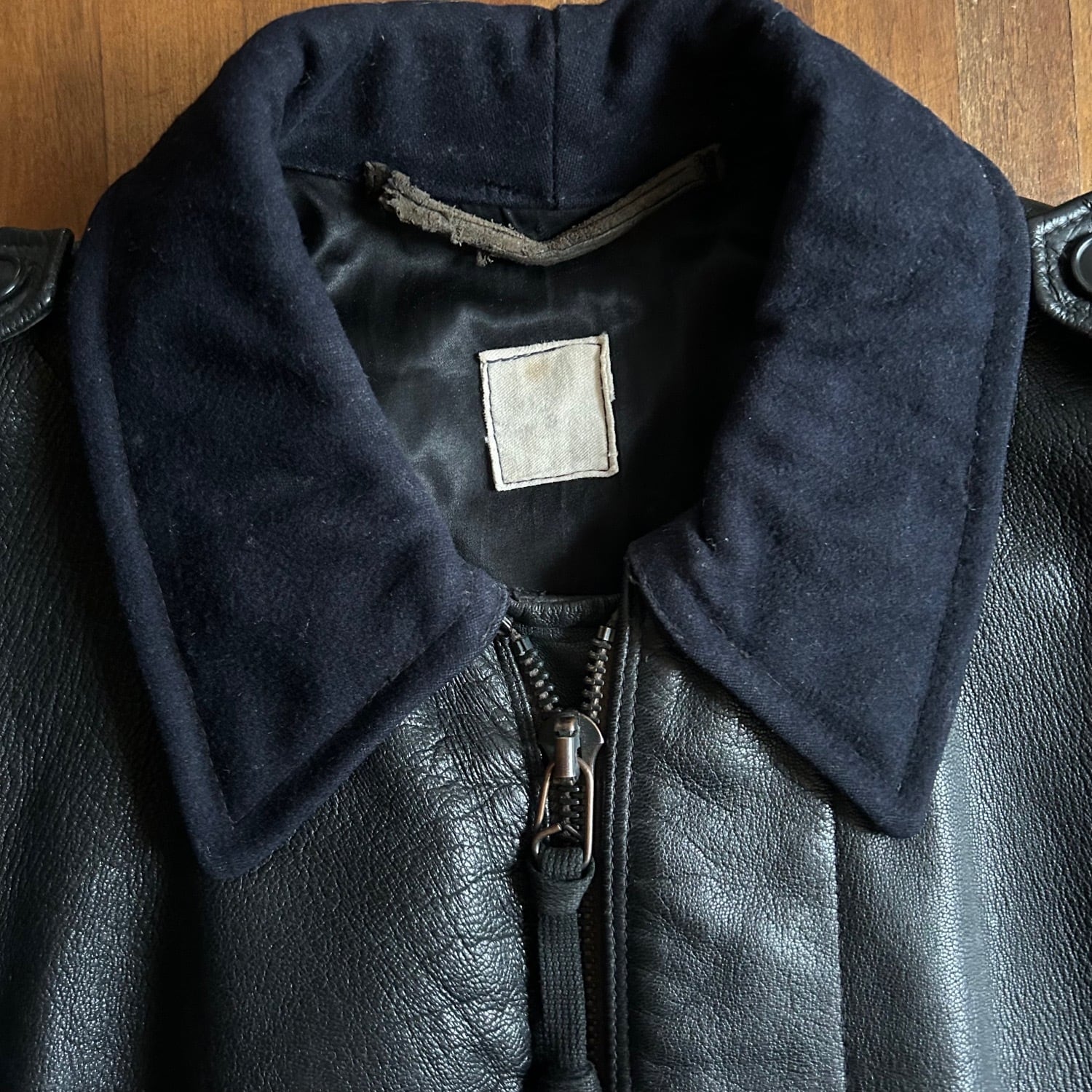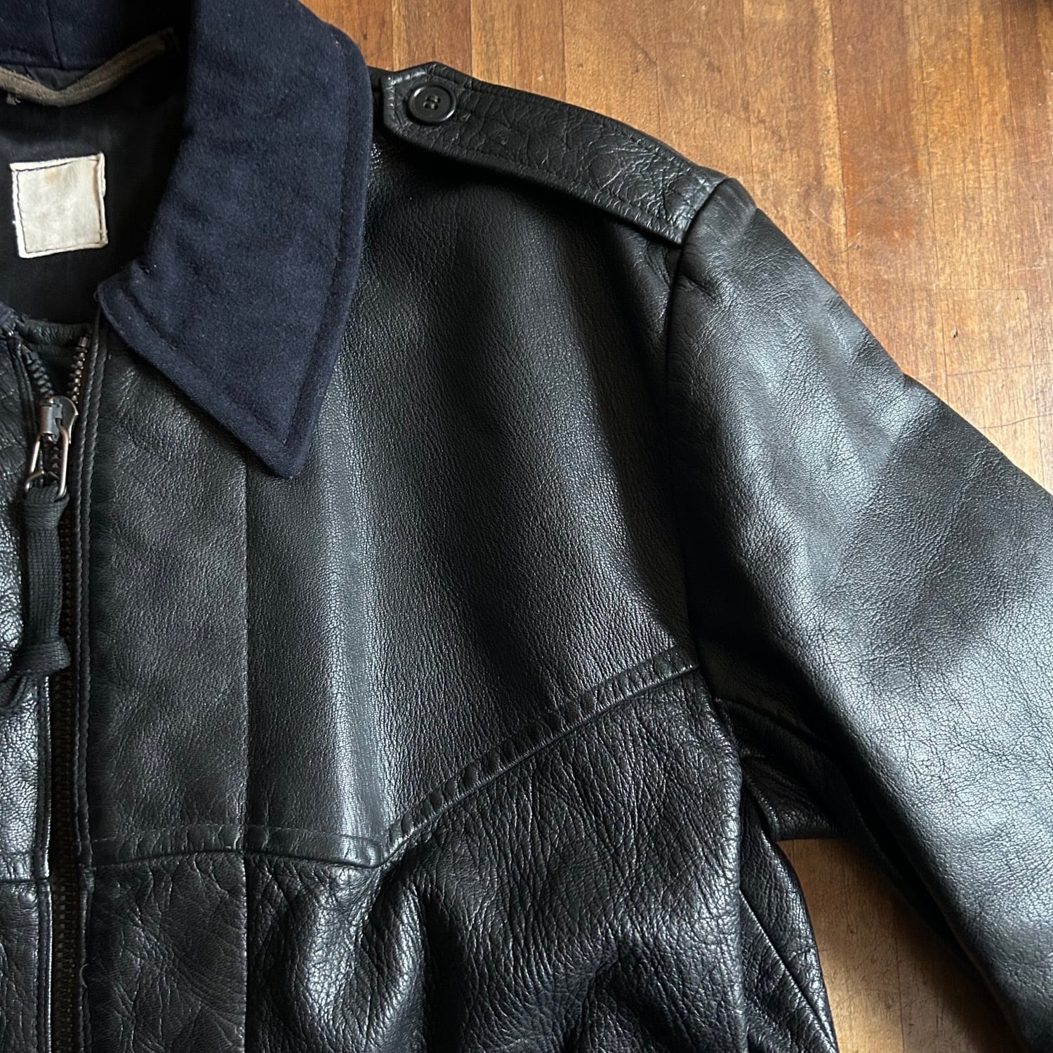 ミリタリーポリスに使われていたという本品はゴートレザーのキメの細かいシボが素晴らしく、そしてかなり重量がヘビーです。