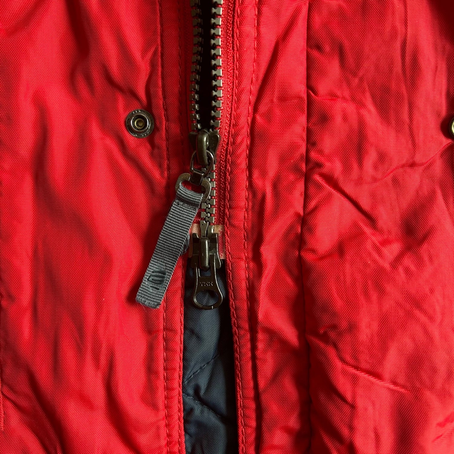 表のシェルは硬いナイロンとパデット(中綿)の素材感です。