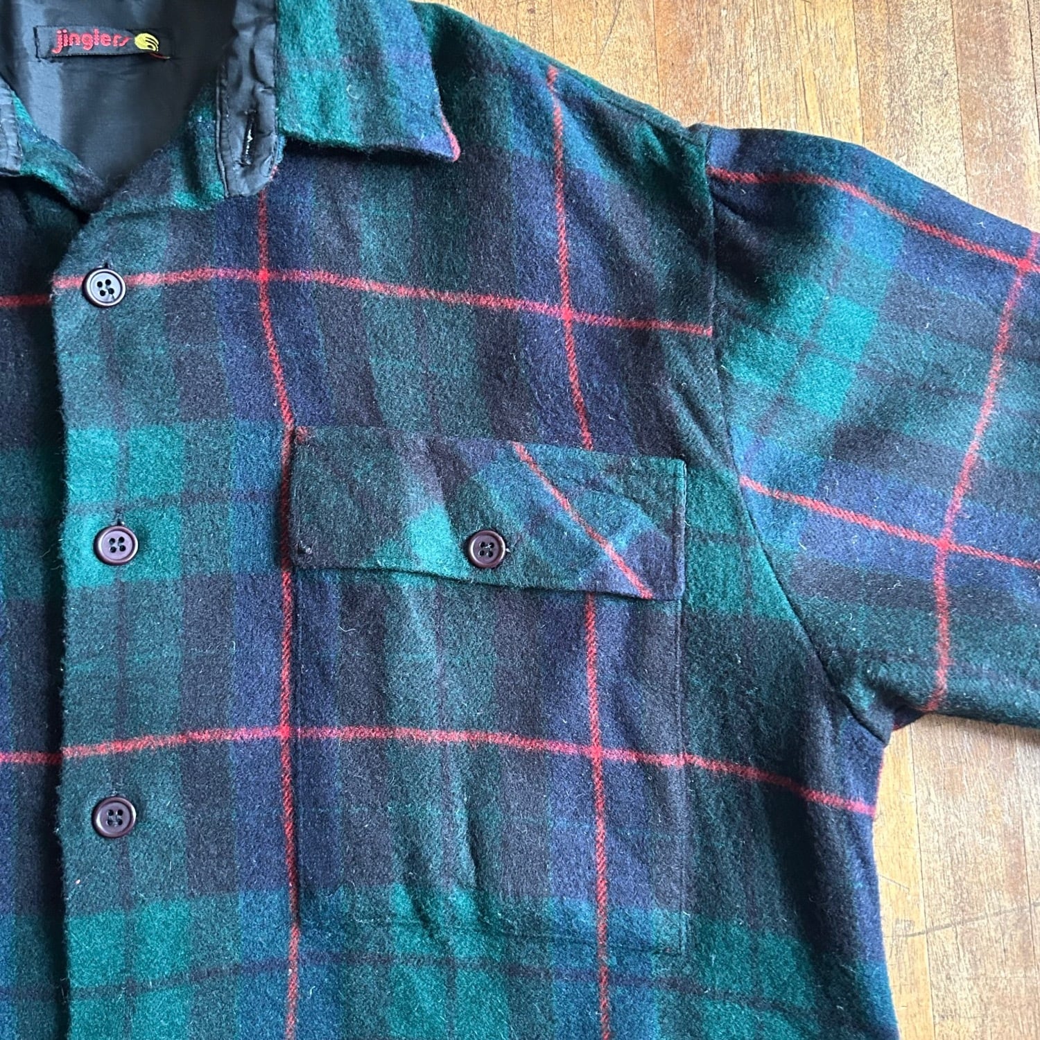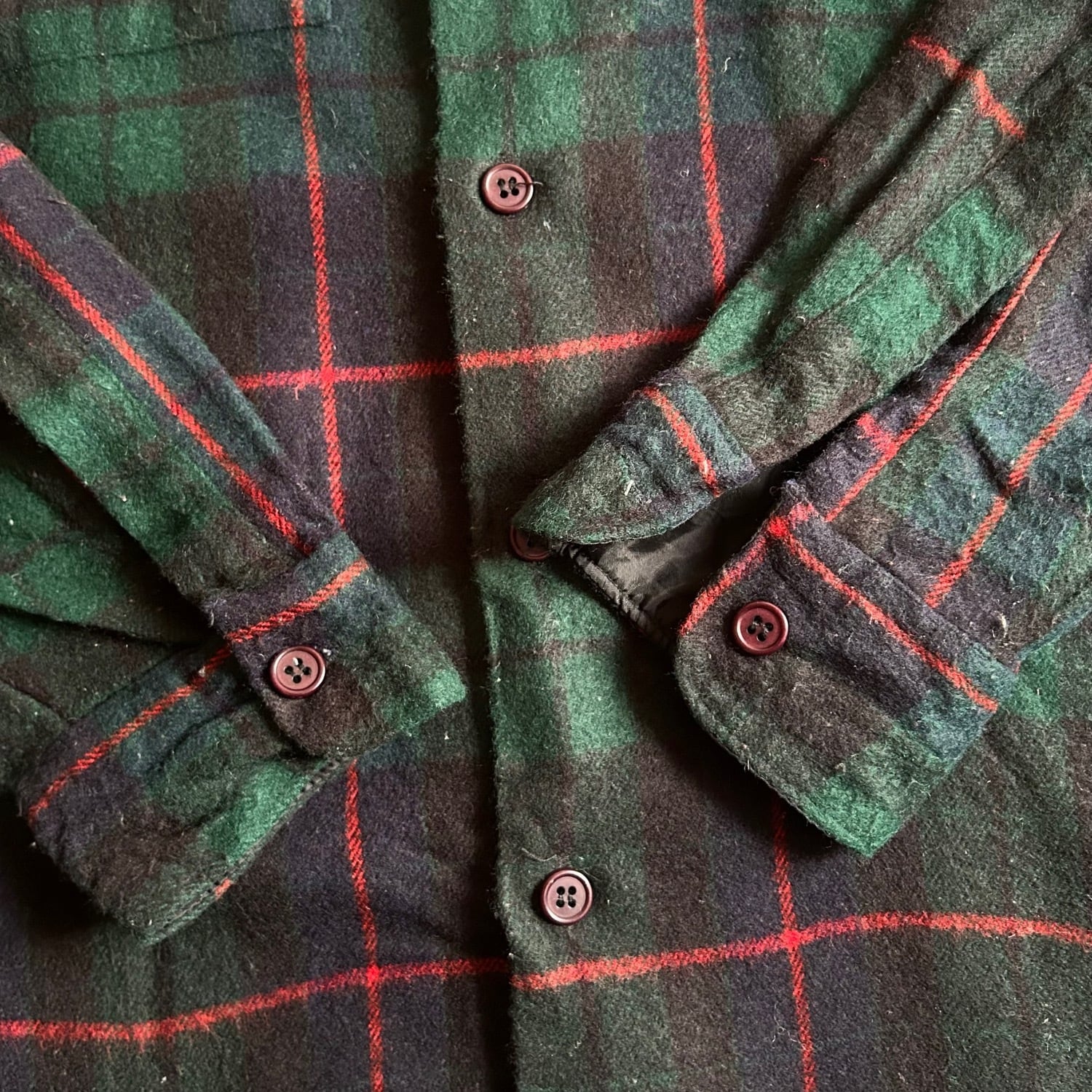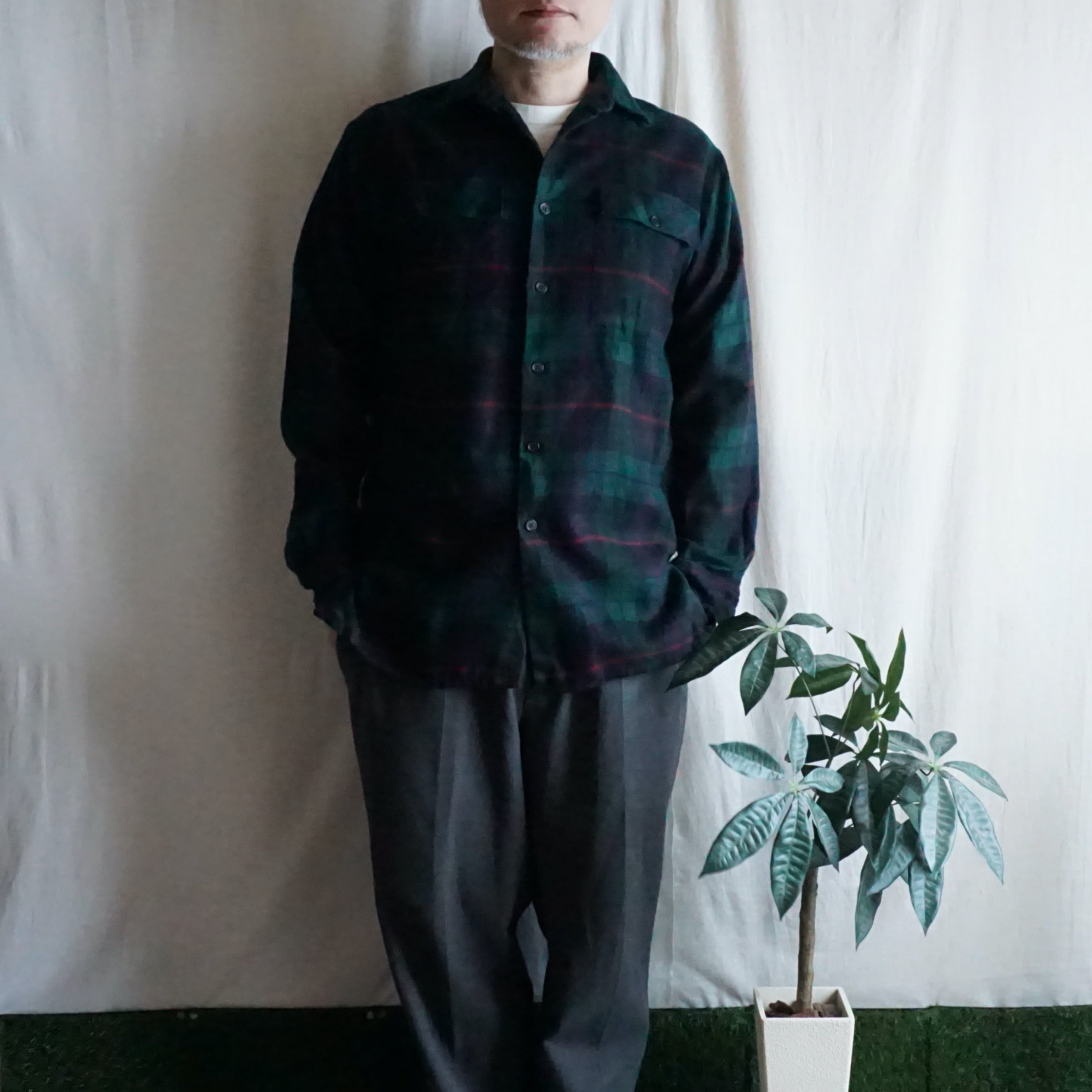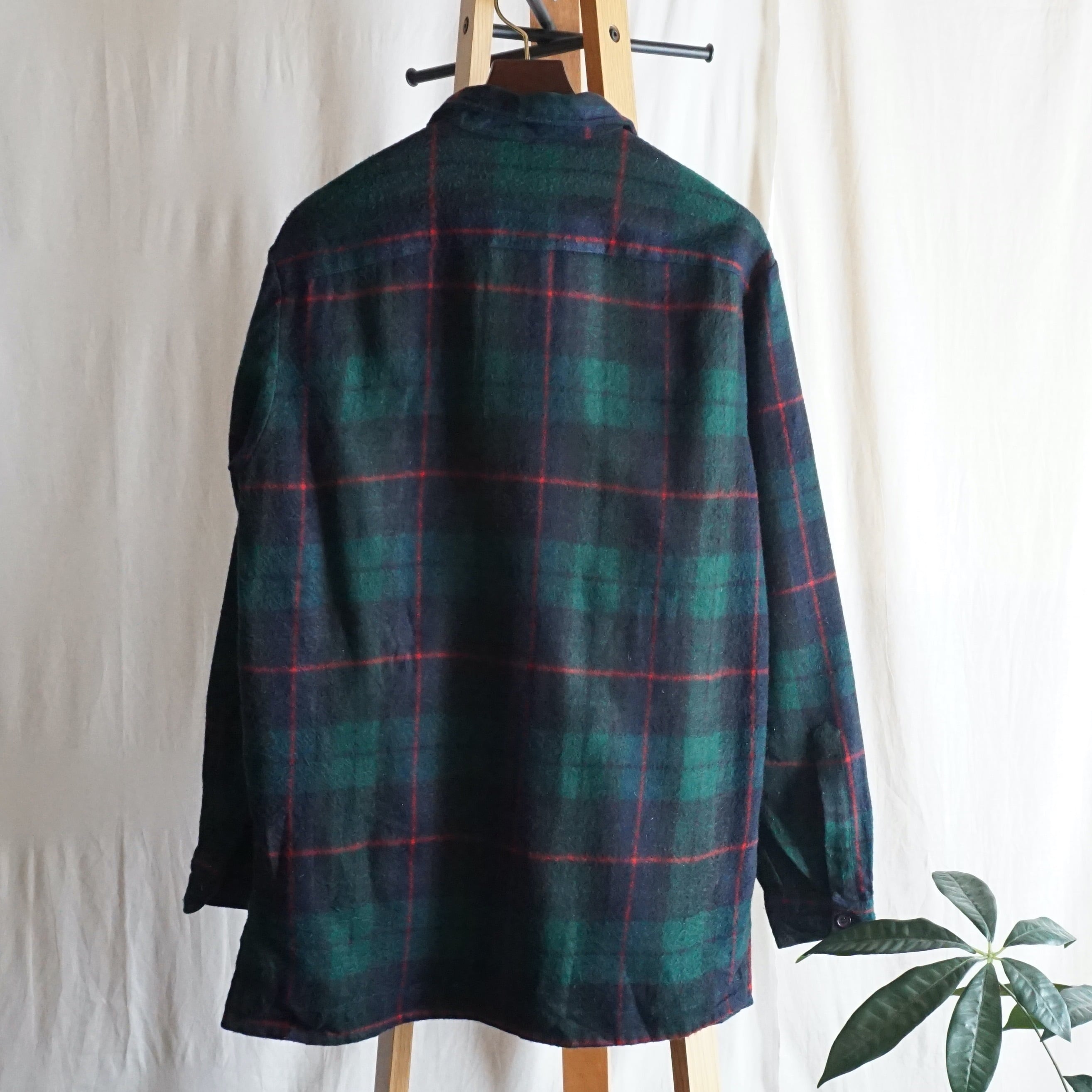 イタリア ブラックウォッチ柄アクリルシャツ 80's Italy [C2663]