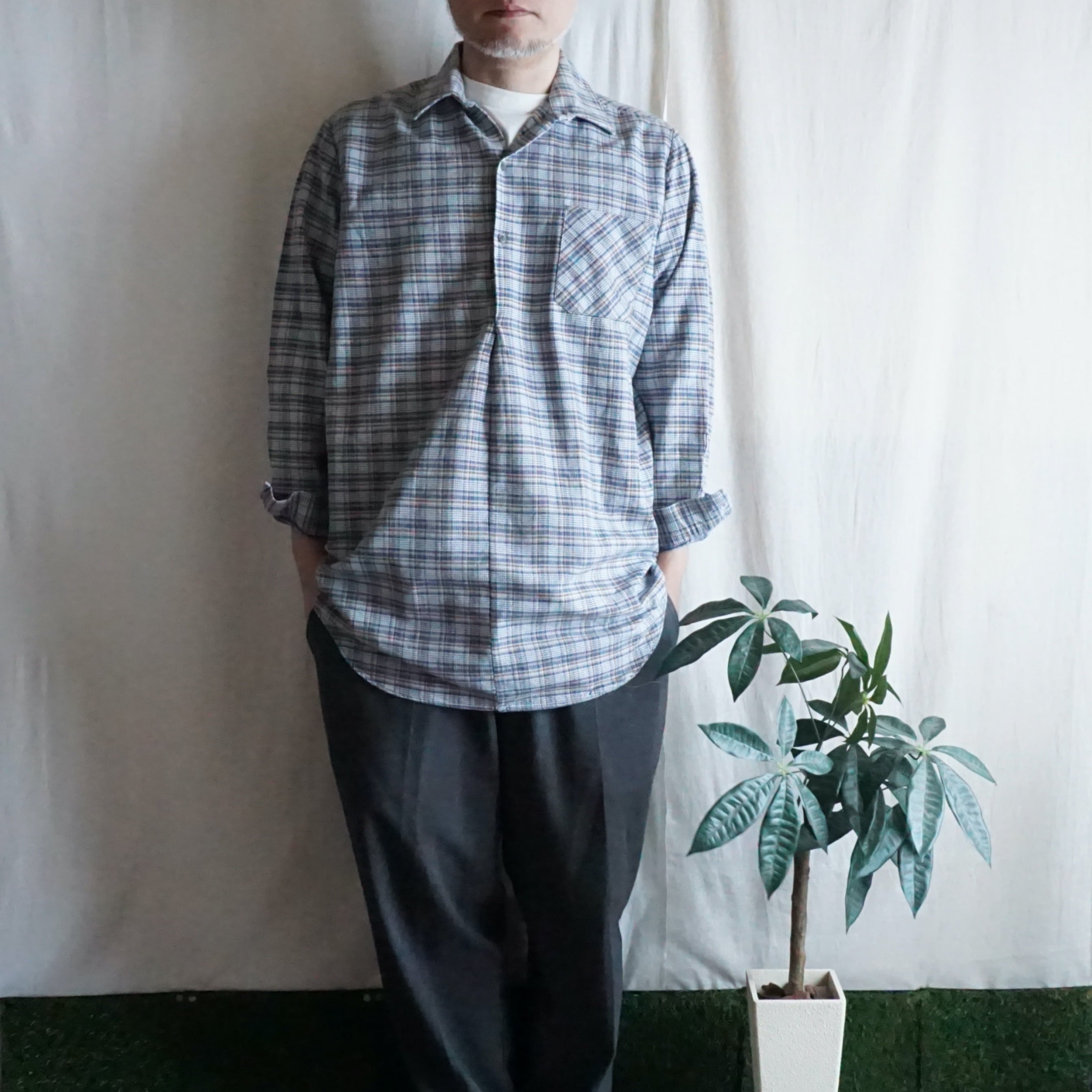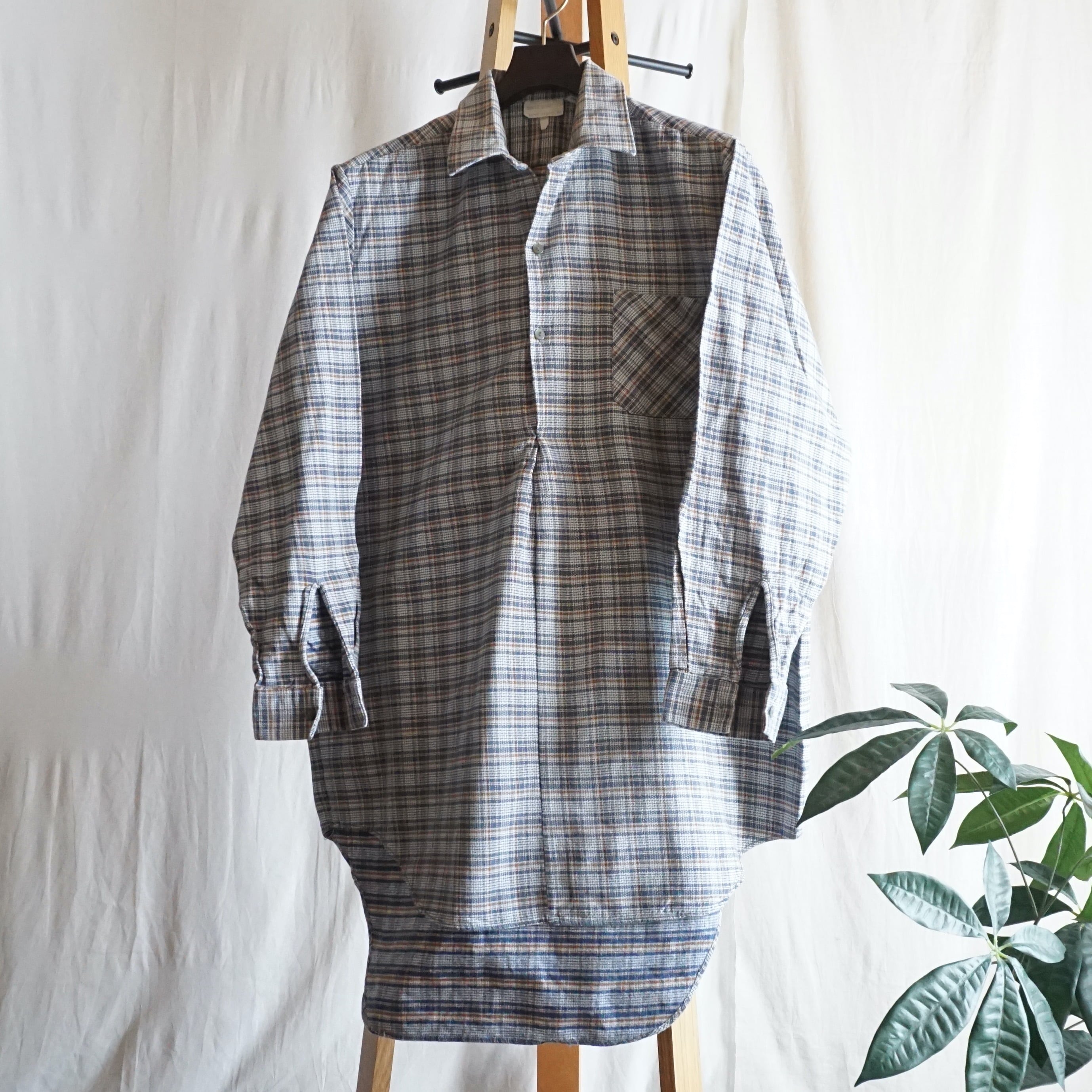 フランス チェック柄グランパシャツ 70's France [C2661]