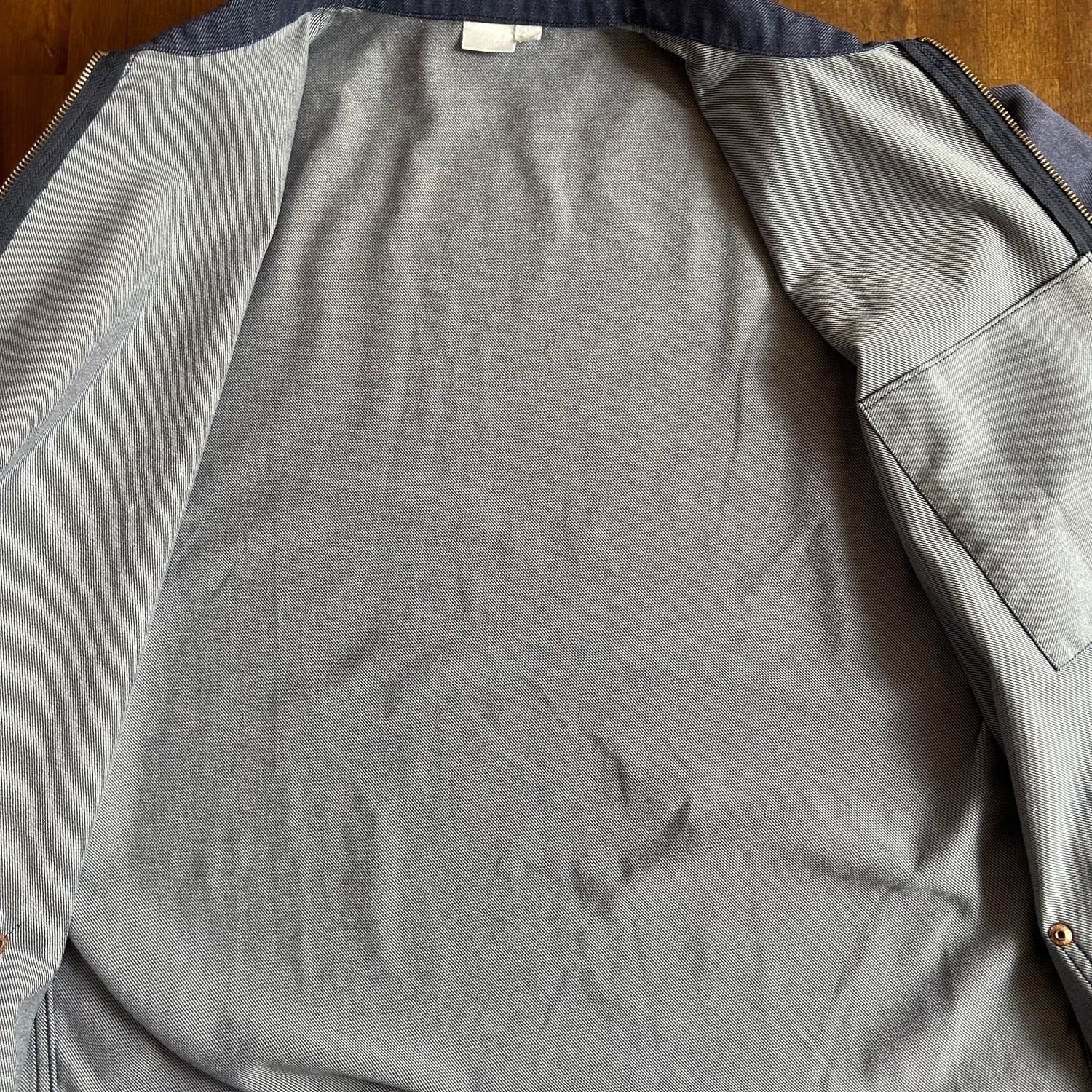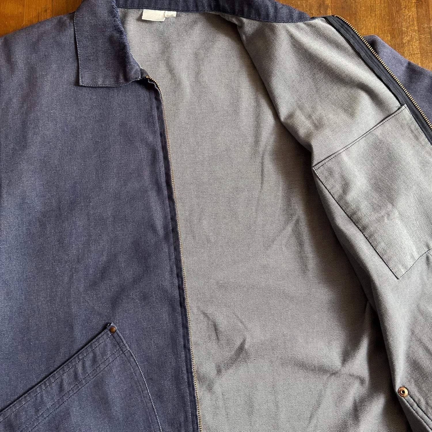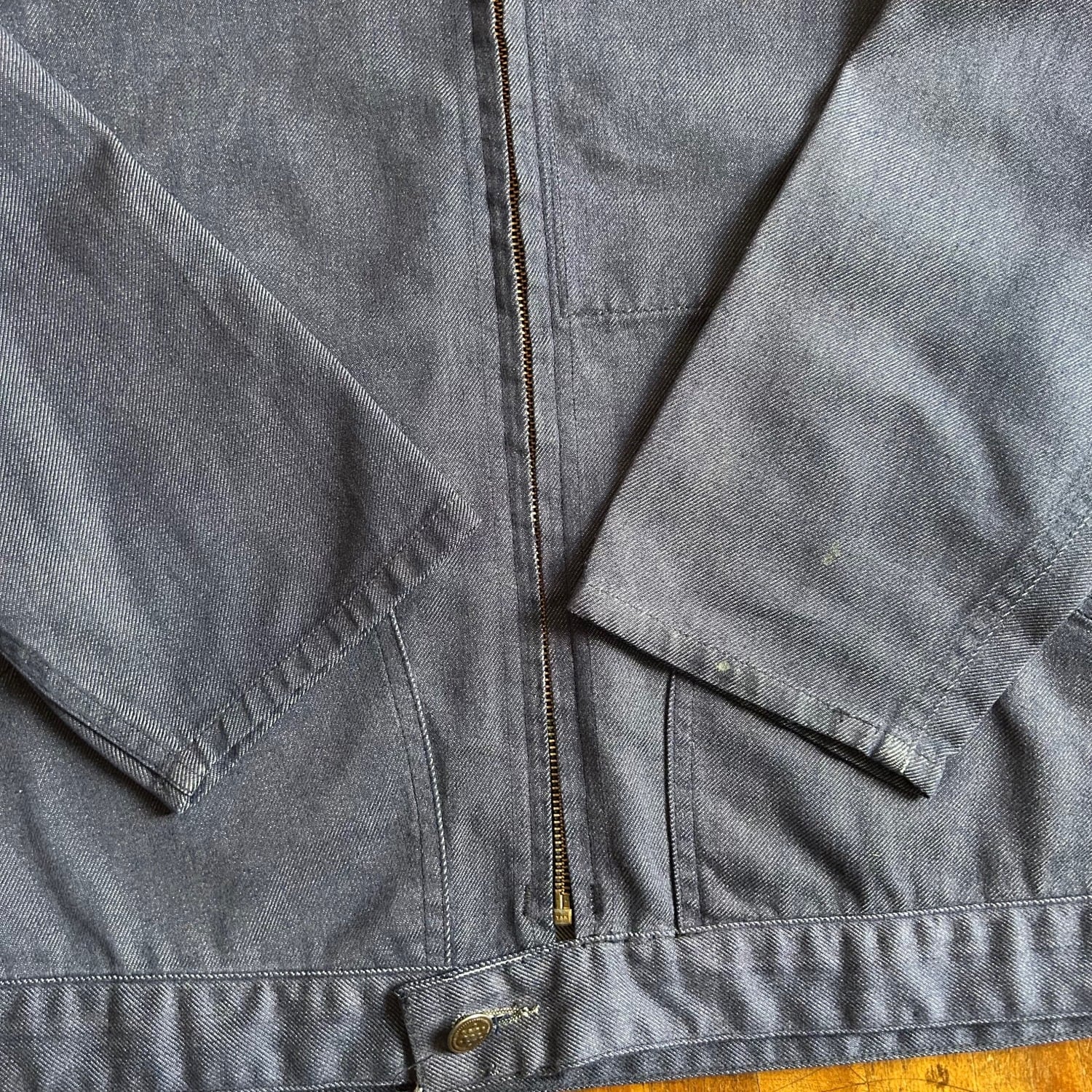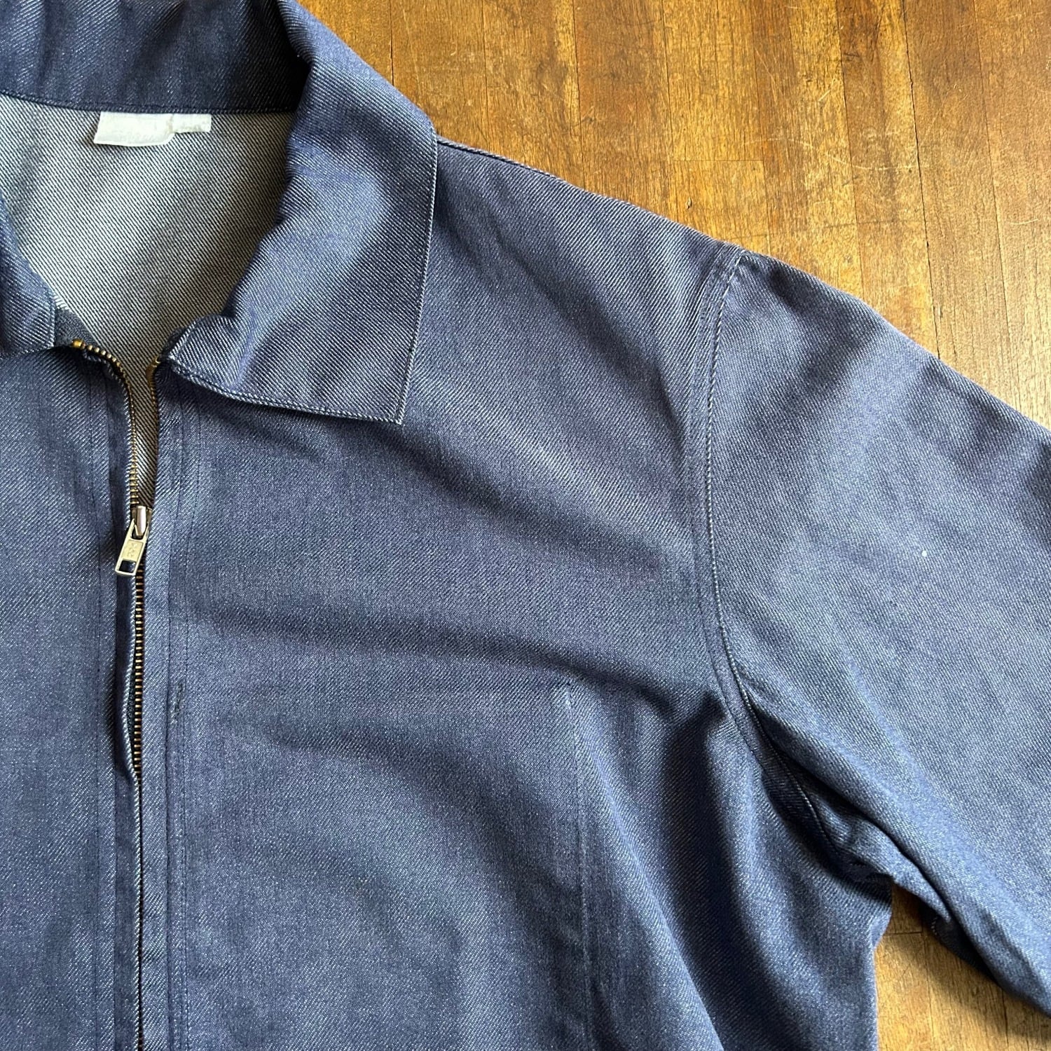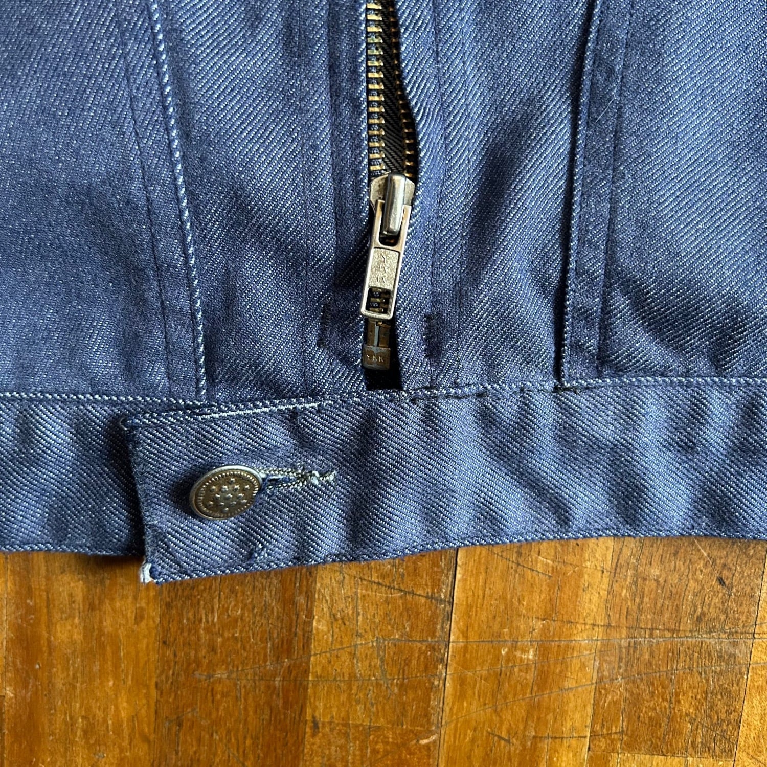 フランス海軍のデニムジャケットの形が元ネタと思われる本商品は、オリジナルにはないポケットの形や、US軍のヴィンテージに見られる13スターメタルボタンを模したものを採用するなど工夫が面白いです。