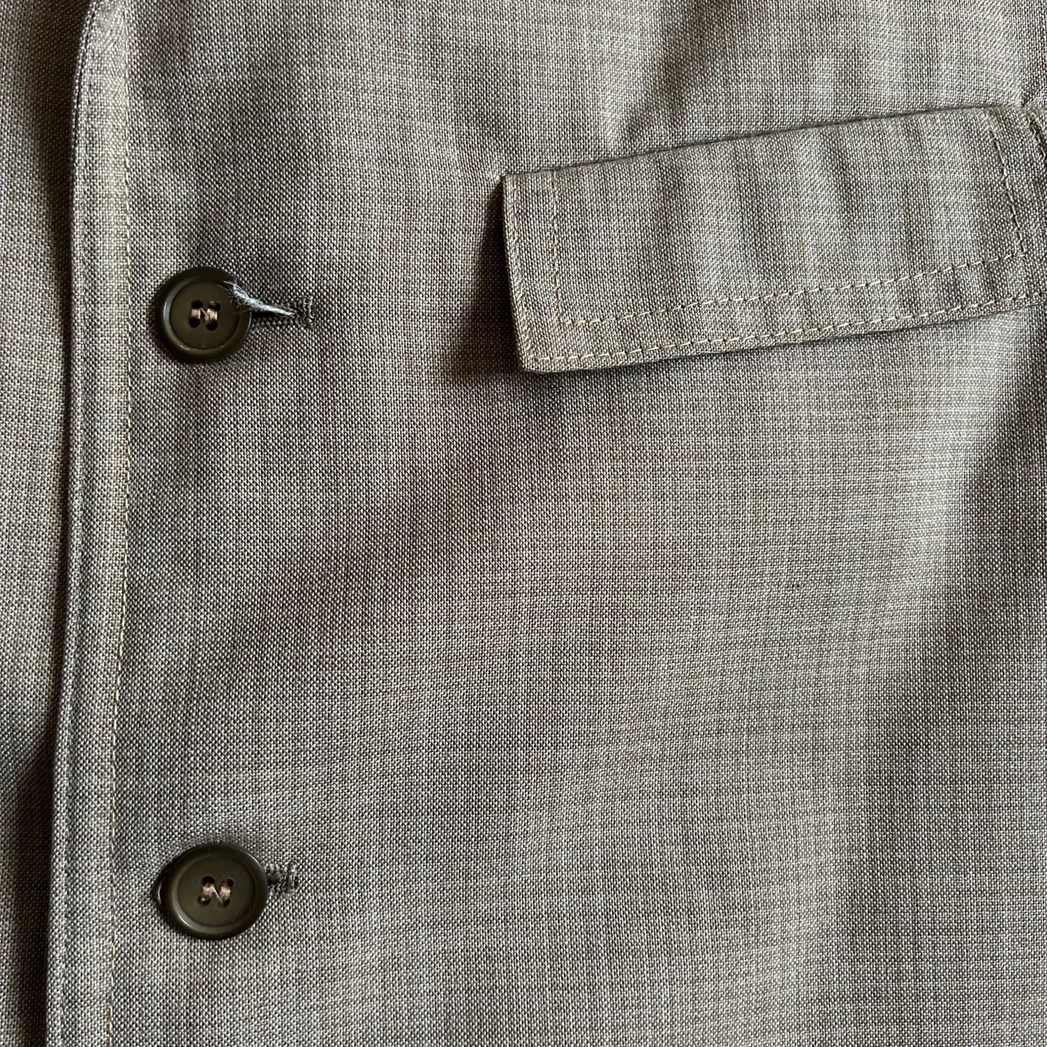 4つボタン、サイドにシャツのようなスリット、胸ポケットはフラップ付きでウエストは絞らずに背面のヨーク部分に僅かに絞りを入れている自由な設計です。