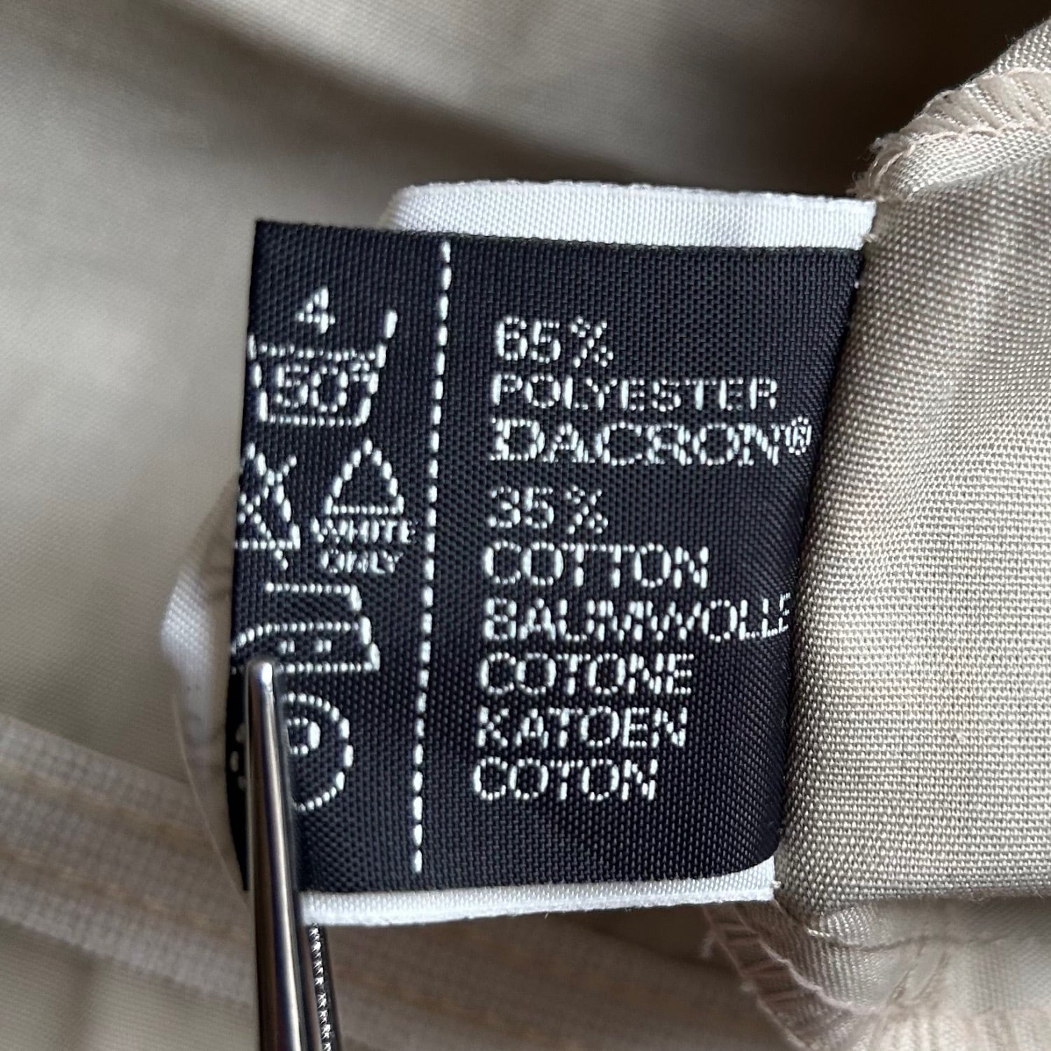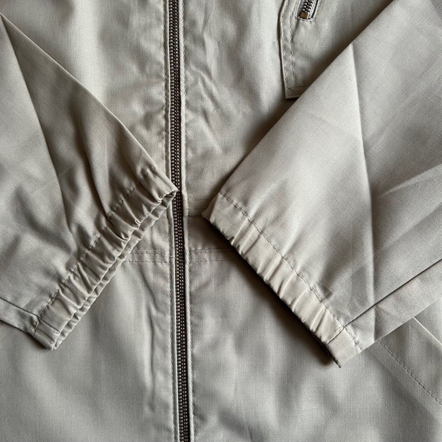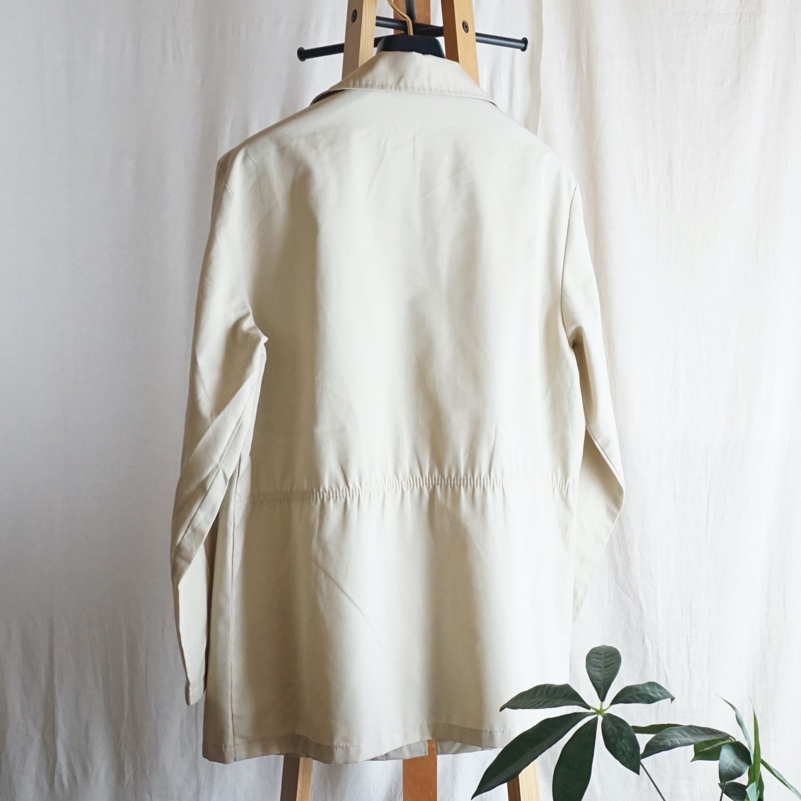 コットン35%ポリエステ65%の素材感は薄手で硬さのある春夏秋向けの素材感です。