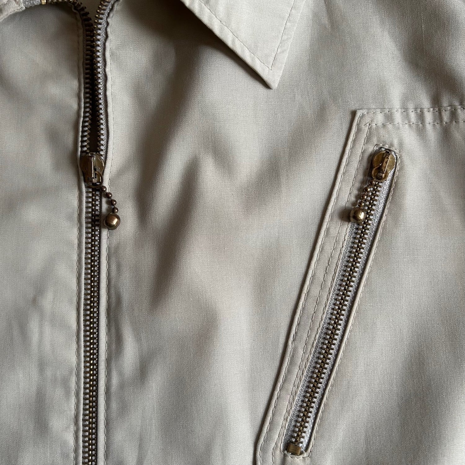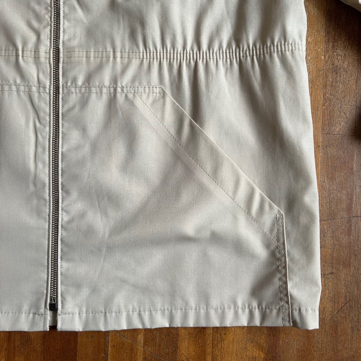 ナチュラルなベージュの色味が北欧ものらしくてオーセンティックですが、ポケットの形状やファスナーの引き手のチェーンの形状がバランス良く少し捻ったデザイン性です。