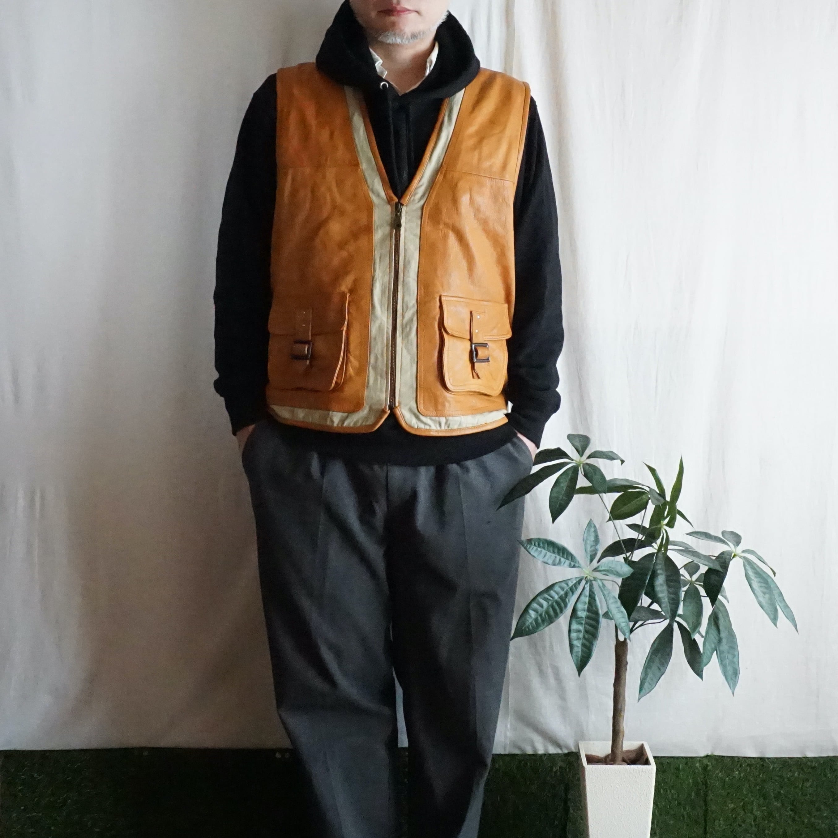 イタリア レザーベスト 90's Italy [C2694]