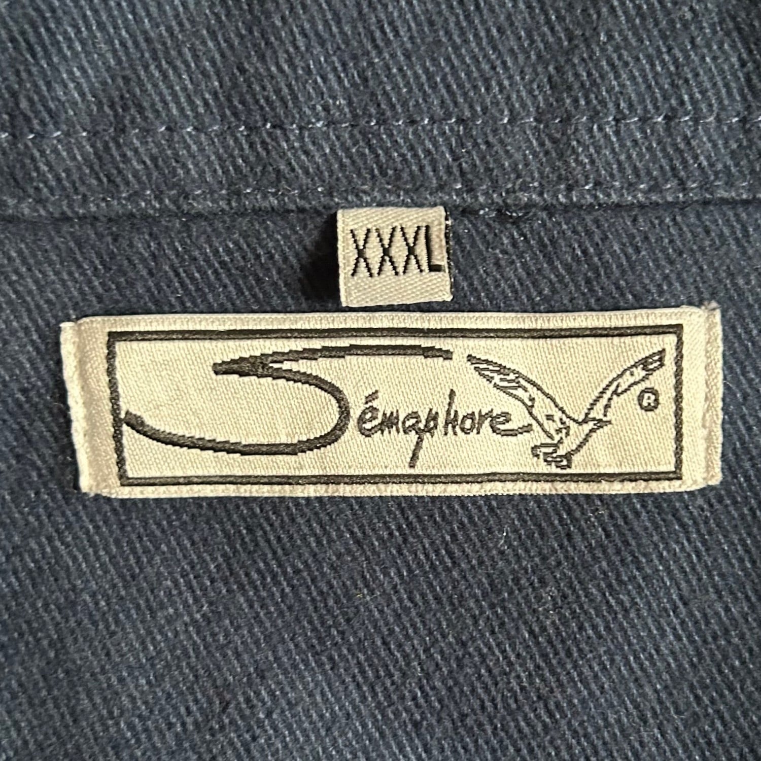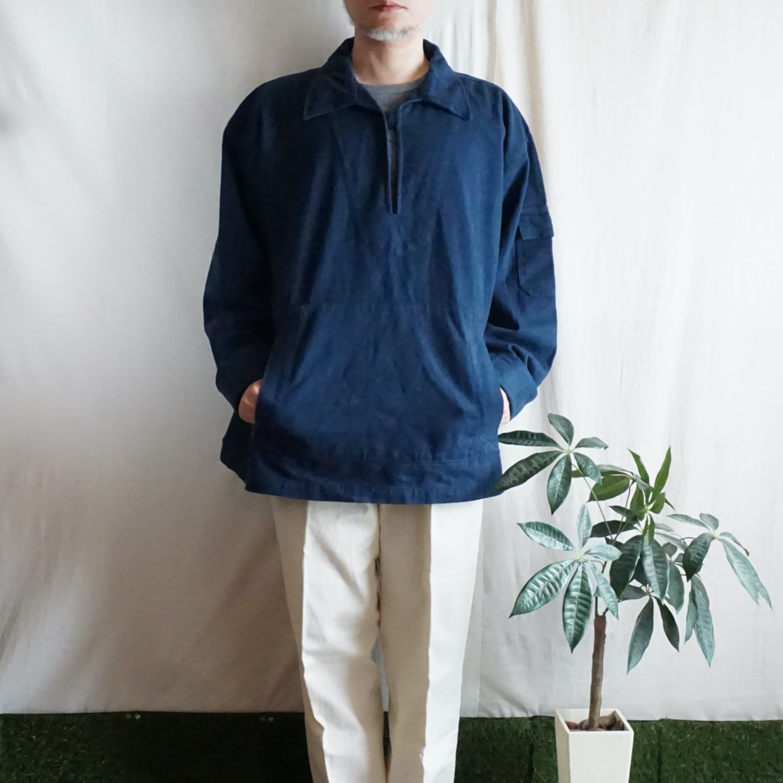 フィッシャーマンシャツの特徴は海に落ちた時に素早く胸元から割いて脱いだりできるよう工夫された意味のあるデザインです。
