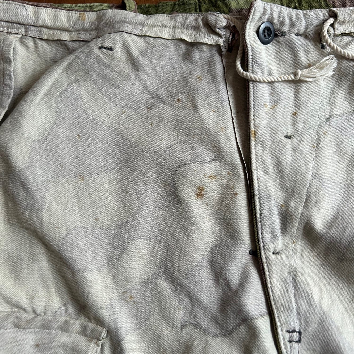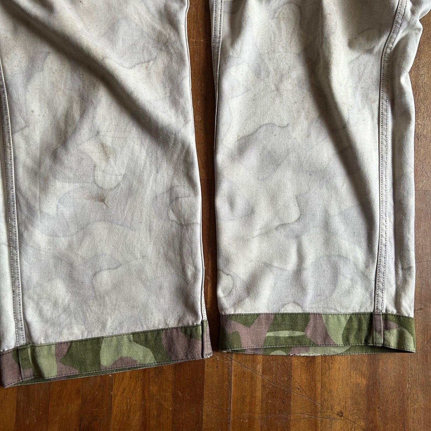 裏面のホワイトのカモ柄の裏抜けの素材感が唯一無二の良さがあります。