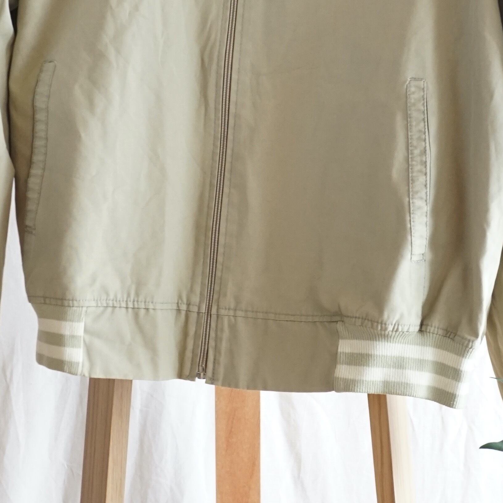 スカジャンを連想させてくれる襟や袖のリブですが、淡いベージュをベースにすると控えめな上品さがあります。