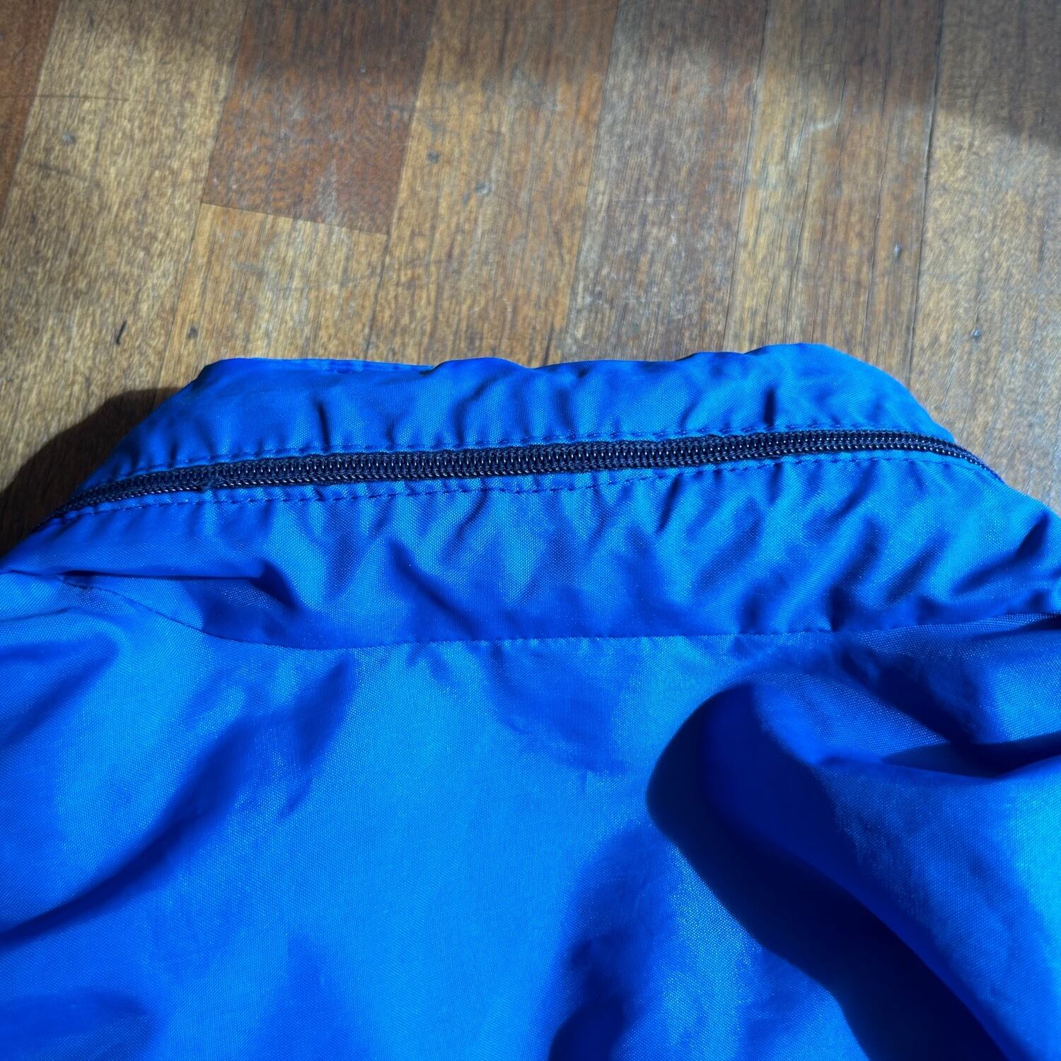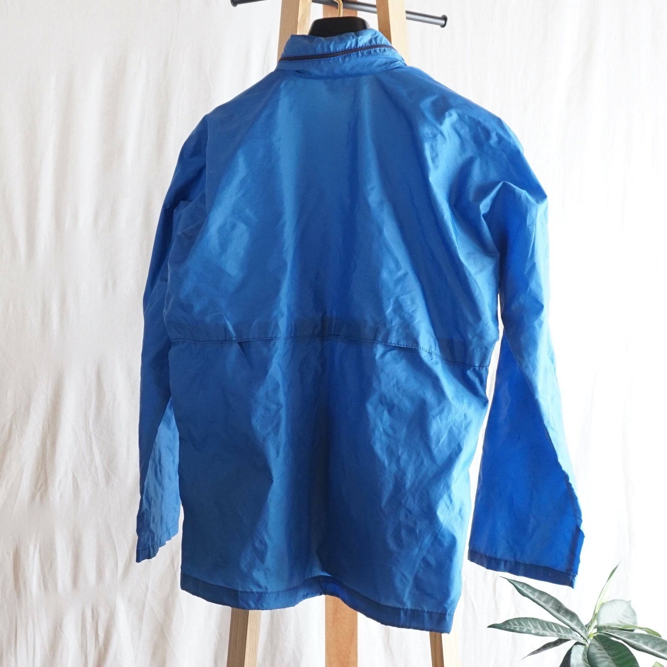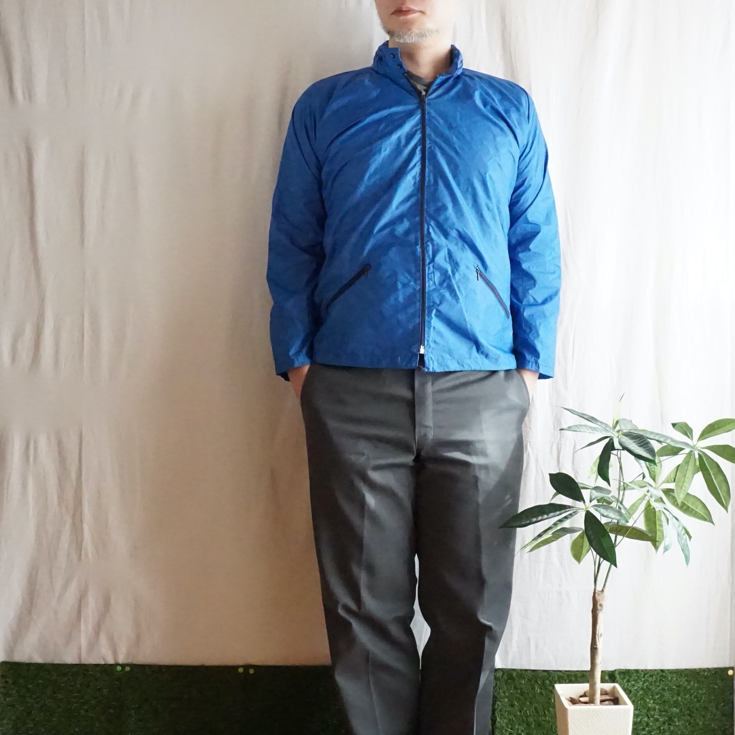 発色の良いブルーの色味と薄手のナイロン素材が春秋向けの素材感ですが、冬場にミドルレイヤーとしても使える一品です。