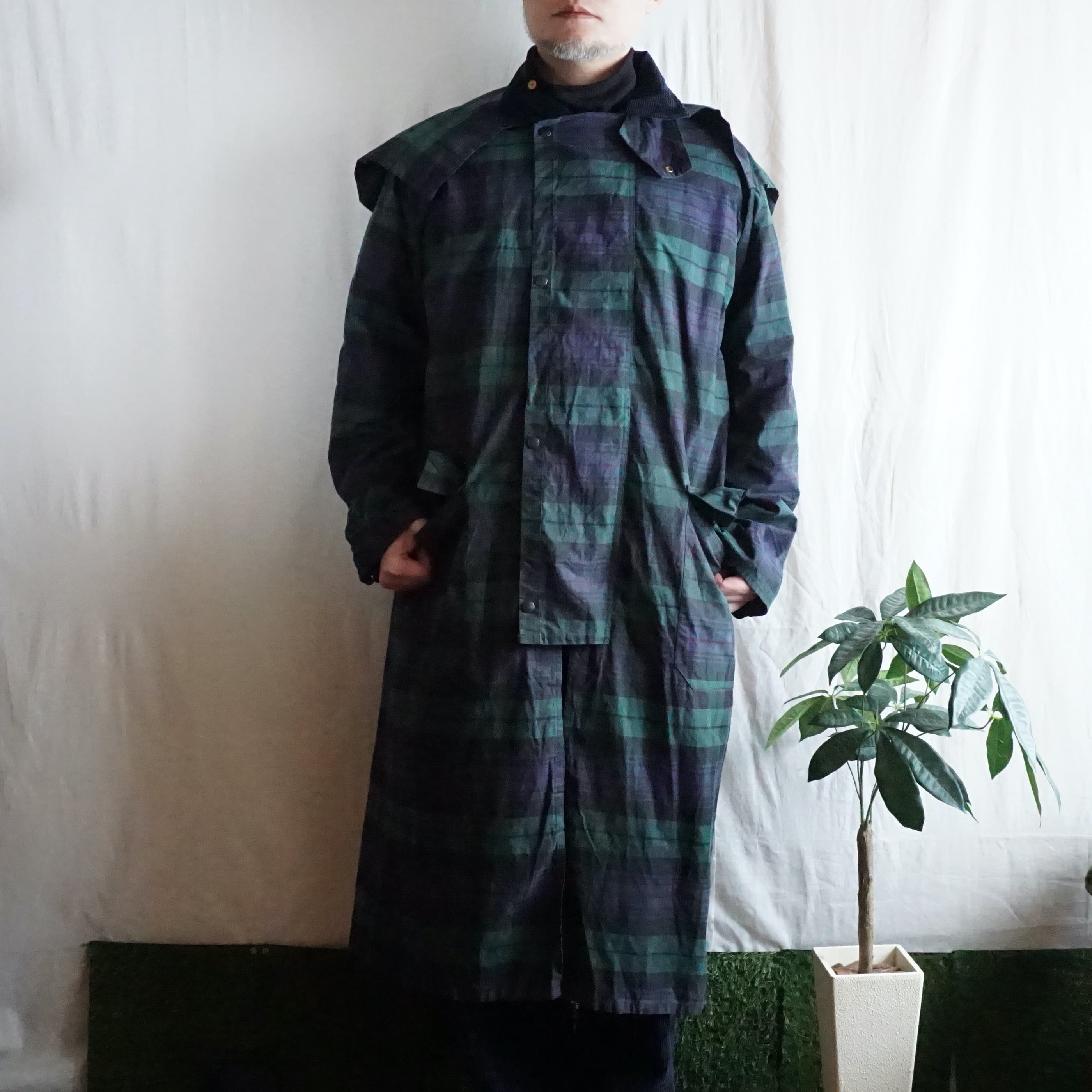 イギリス オイルドコットン ブラックウォッチ柄コート 80's UK [C1857]